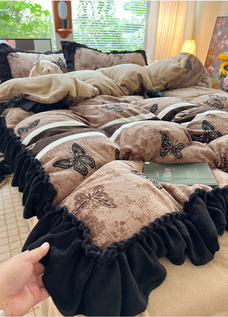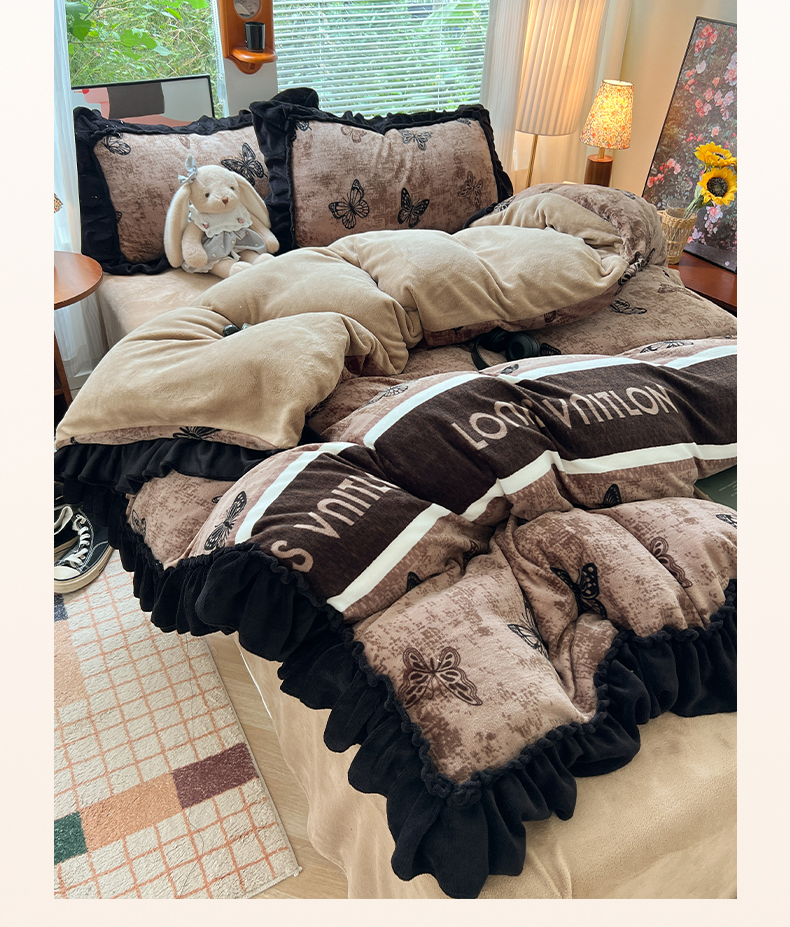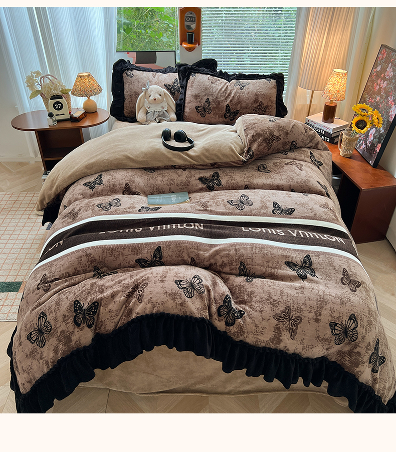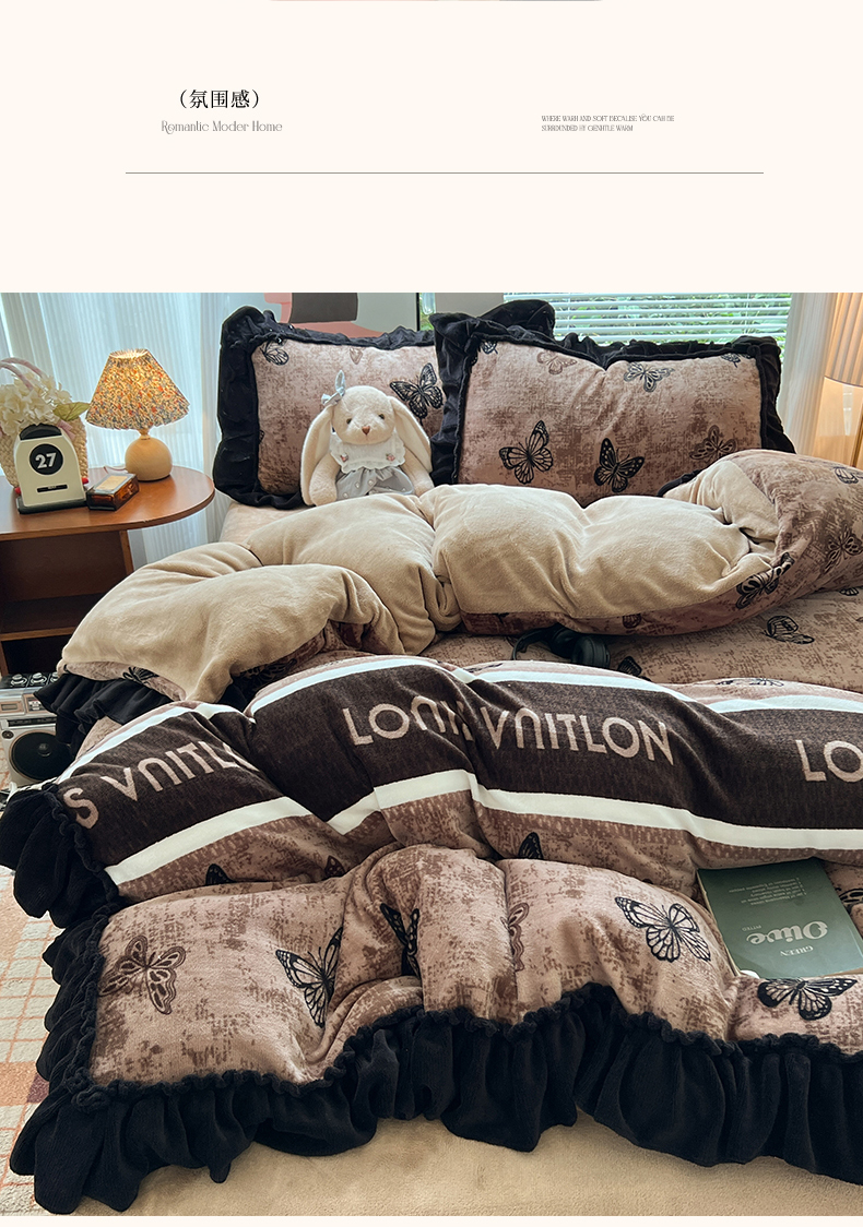 当前位置: 91家纺网 > 商品网购 > 床品套件 > 四件套 > 牛奶绒四件套 > 韩都家居 2025新款法式花边印花牛奶绒四件套 陌离