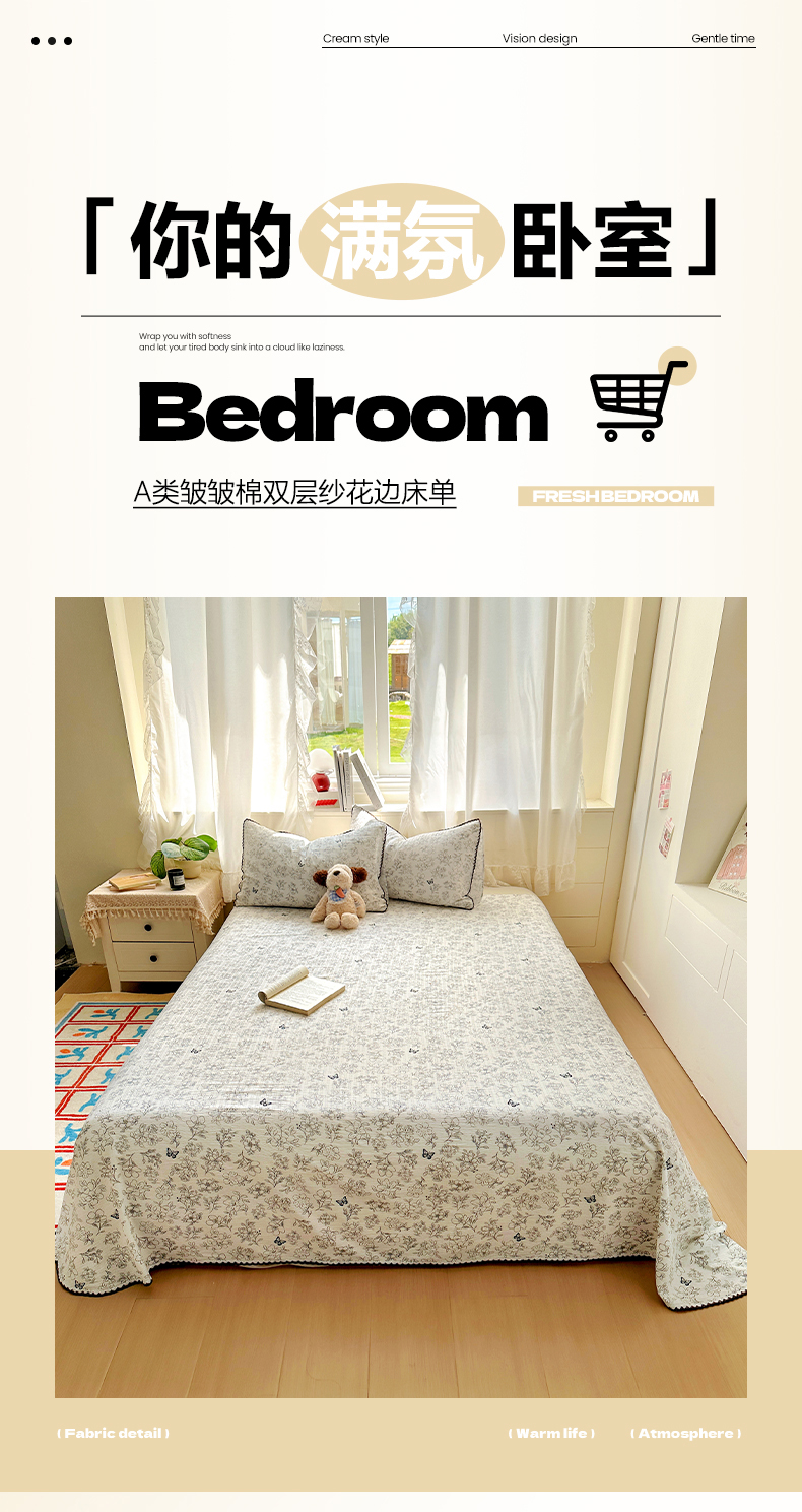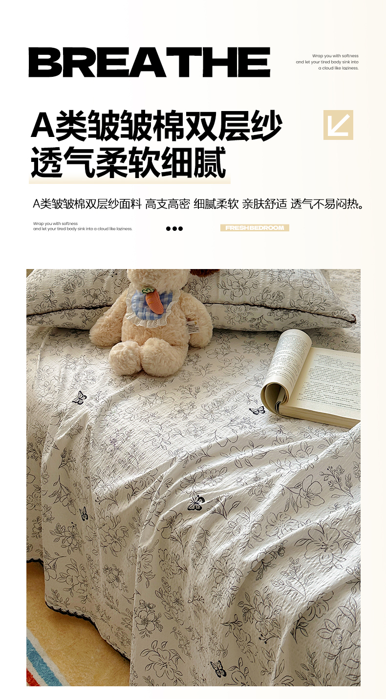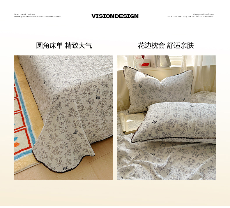 (总)优卡迪家纺馆 2025新款皱皱棉小花边床单(下载文件包含买家秀)