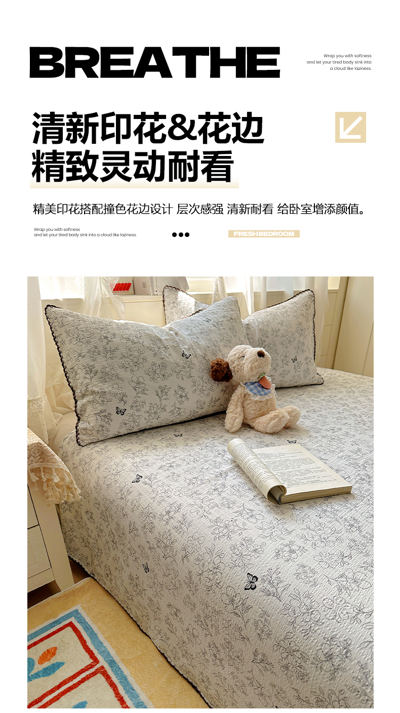 商品名称:(总)优卡迪家纺馆 2025新款皱皱棉小花边床单(下载文件包含买家秀)