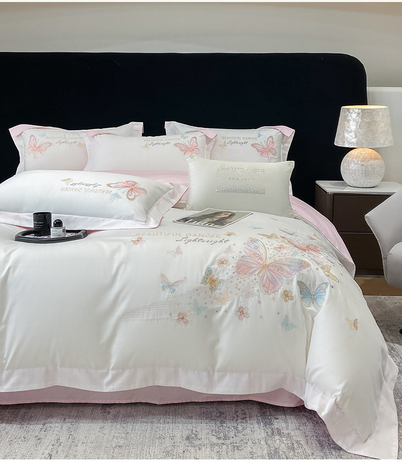 当前位置: 91家纺网 > 商品网购 > 床品套件 > 四件套 > 长绒棉四件套 > (总)丞音家纺 2025新款母婴级A类双面全棉蝴蝶刺绣纯棉长绒棉绣花四件套床单被套