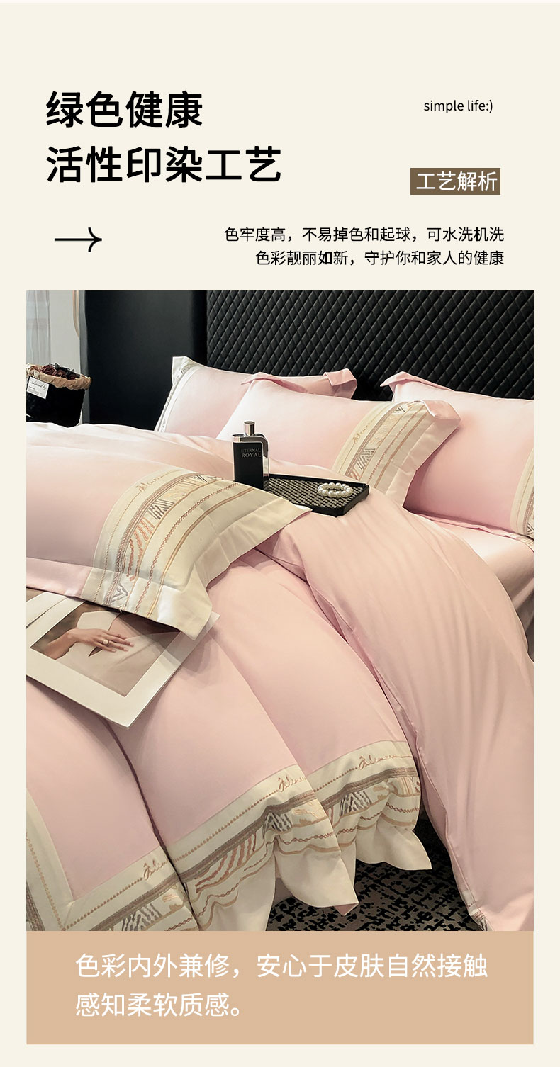 商品名称:丞音家纺 2025新款瑞恩超柔A类100支超细旦长绒棉磨毛刺绣四件套秋冬加厚纯棉全棉绣花床上用品 瑞恩-桃花粉