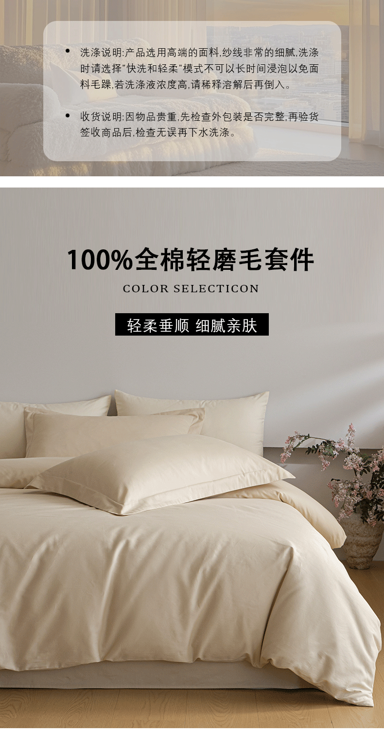 当前位置: 91家纺网 > 商品网购 > 床品套件 > 四件套 > 全棉普通四件套 > 618家纺 2025新款全棉100支磨毛单品四件套系列-四件套 雪咖