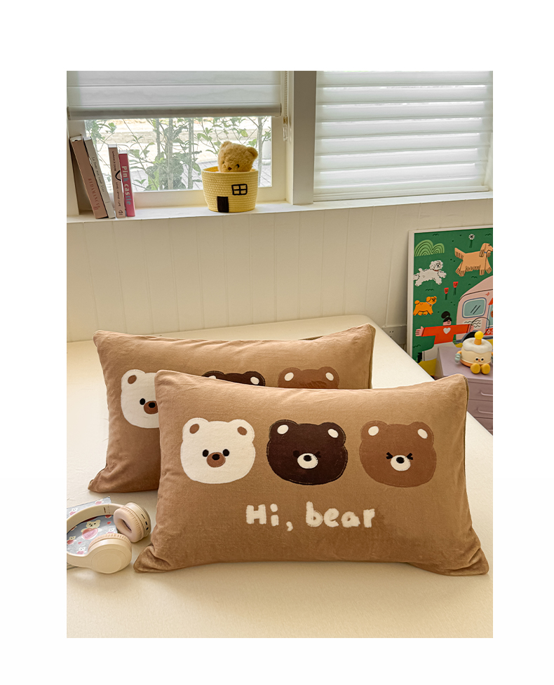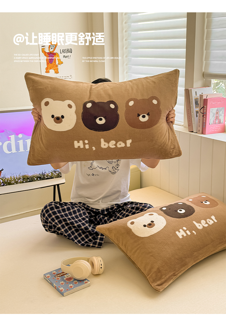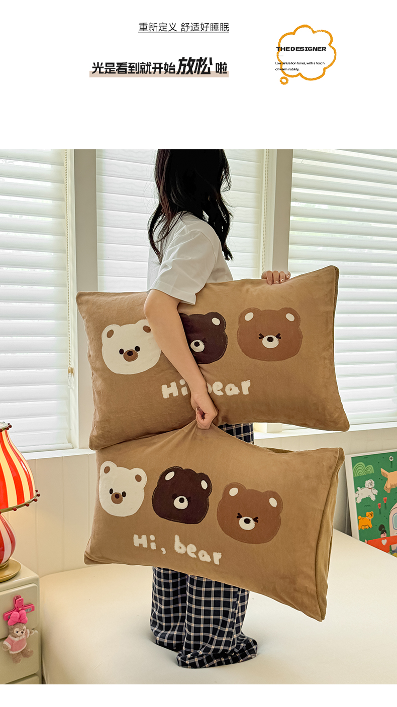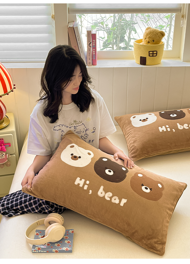 佳汐蓝家纺 2025新款牛奶绒卡通大版枕套 三只熊