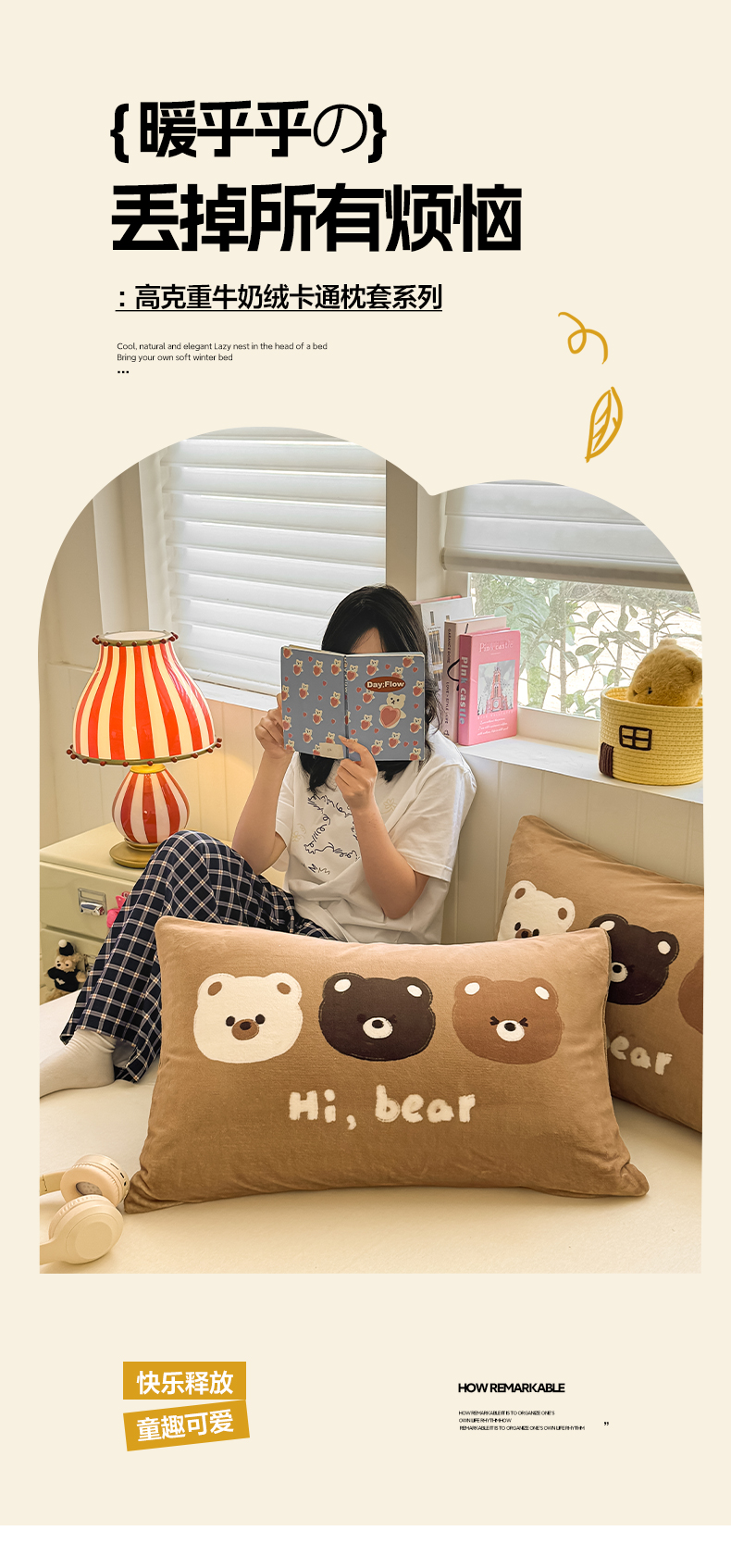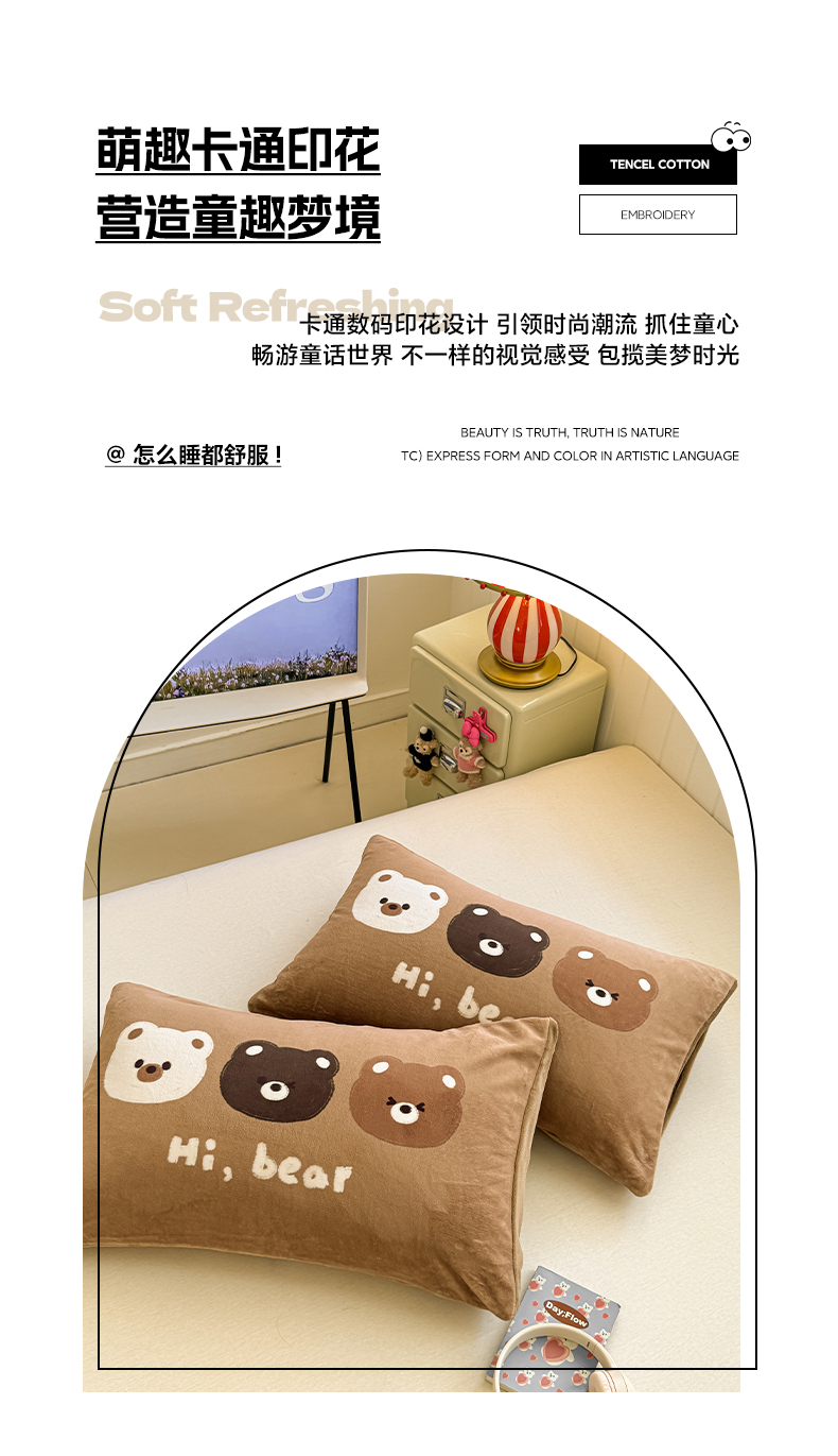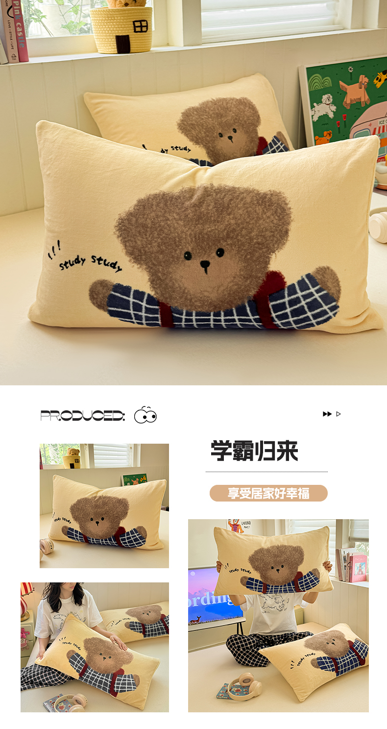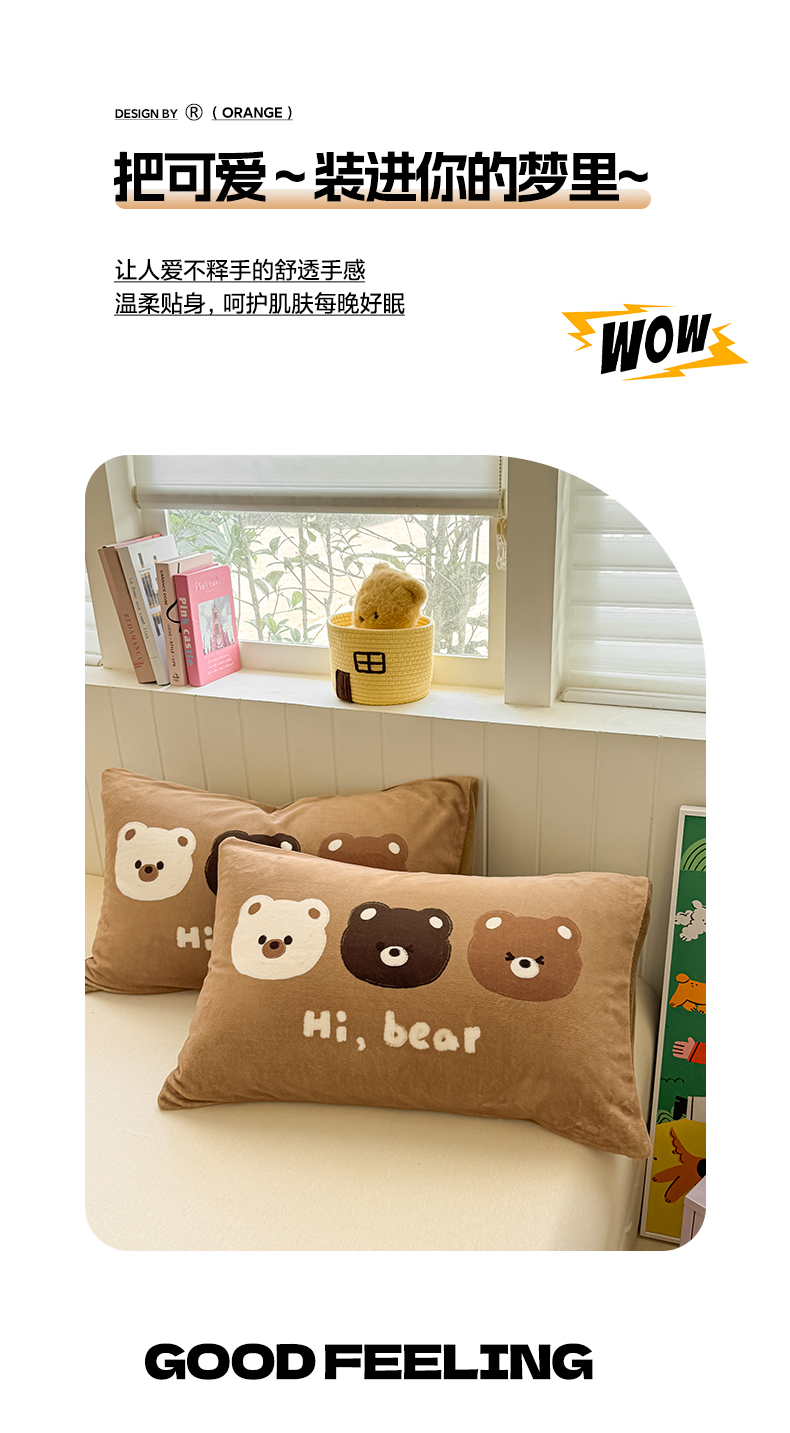 佳汐蓝家纺 2025新款牛奶绒卡通大版枕套 三只熊