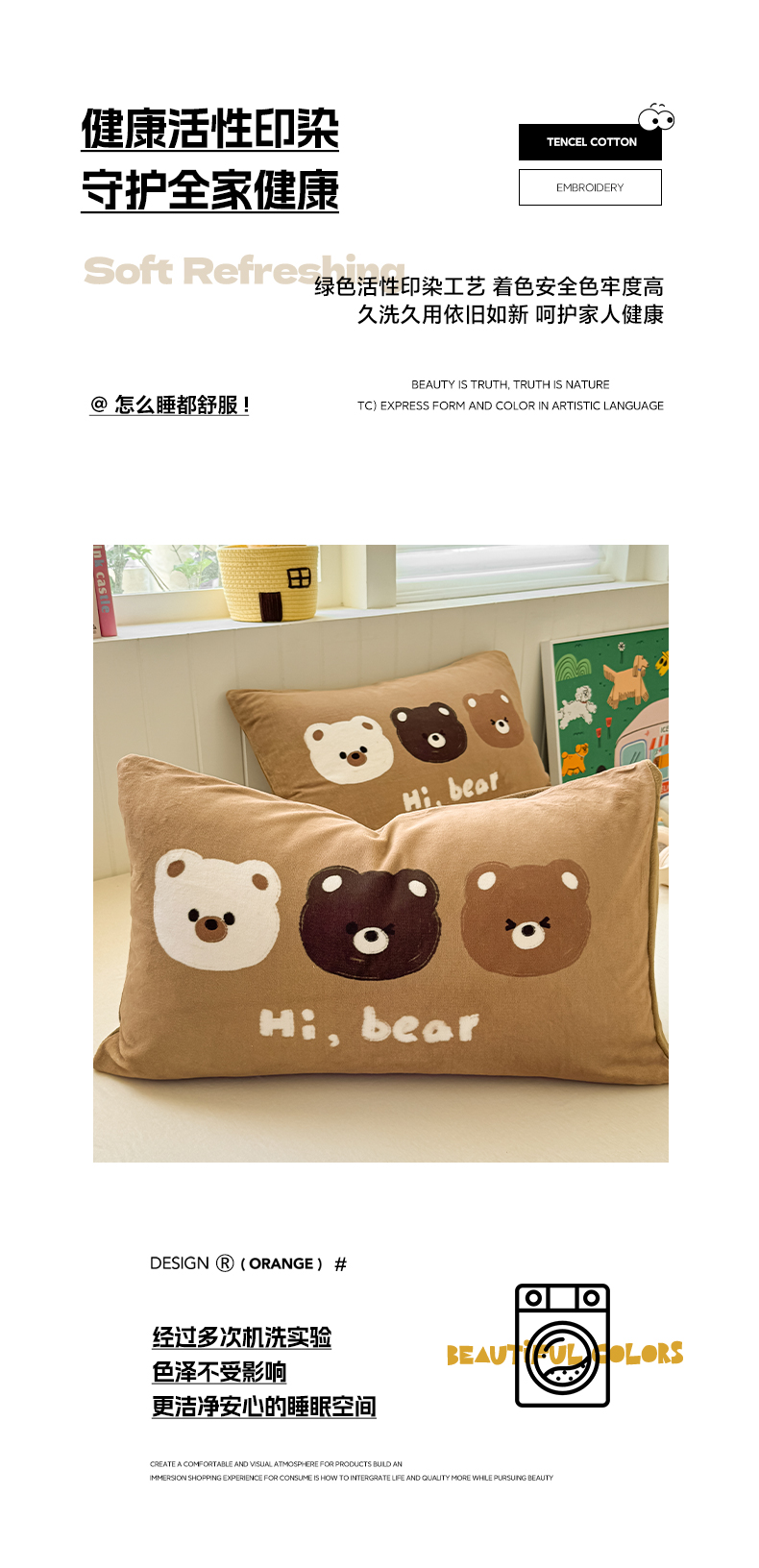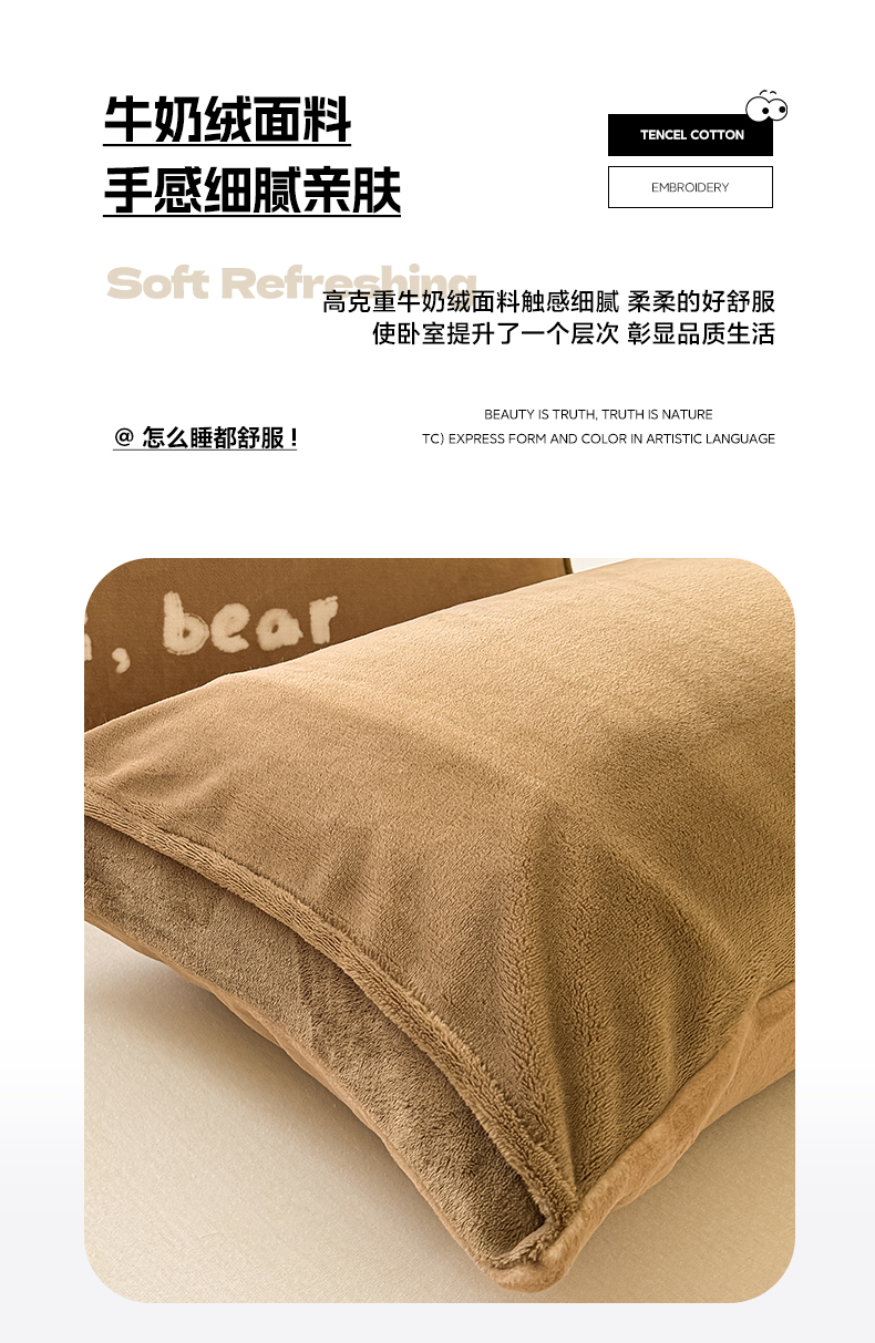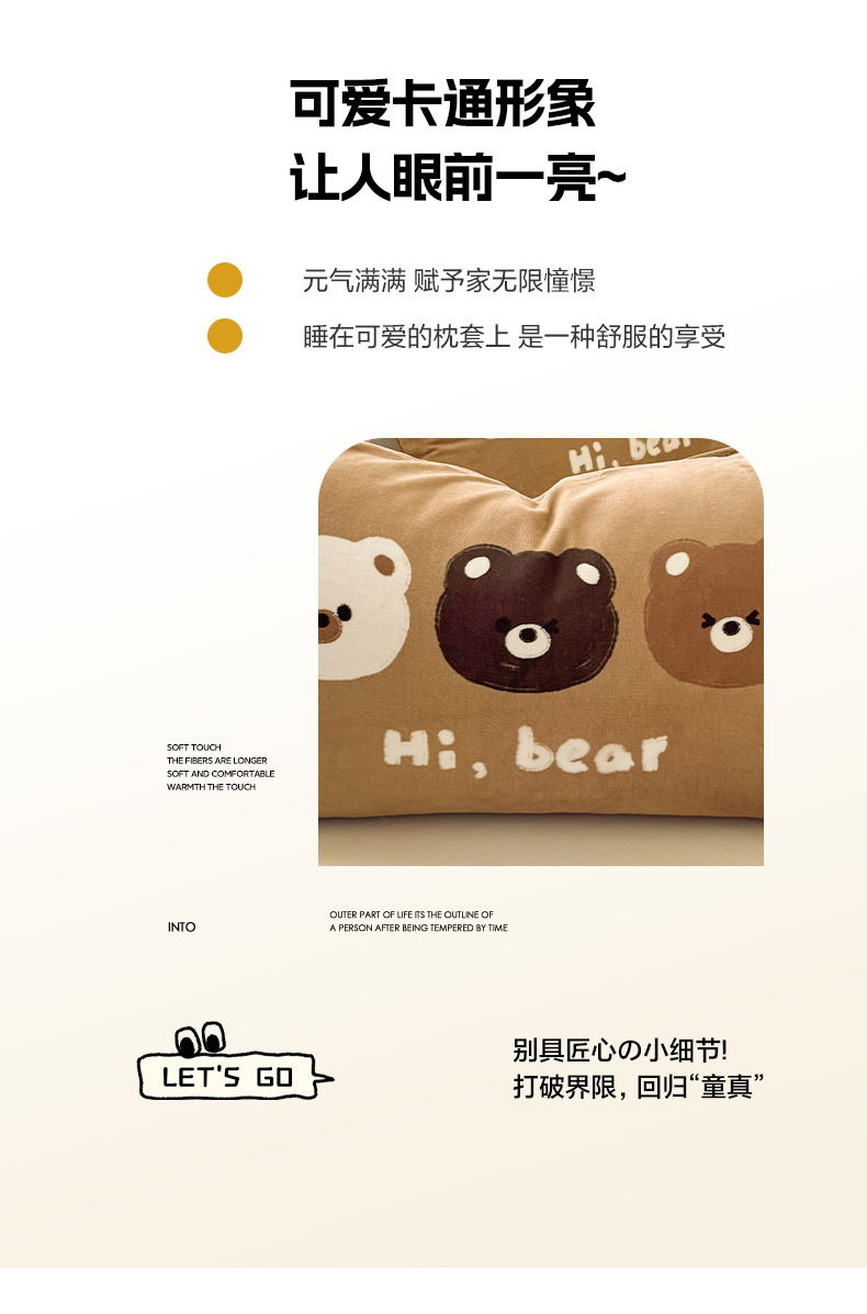 商品名称:佳汐蓝家纺 2025新款牛奶绒卡通大版枕套 三只熊