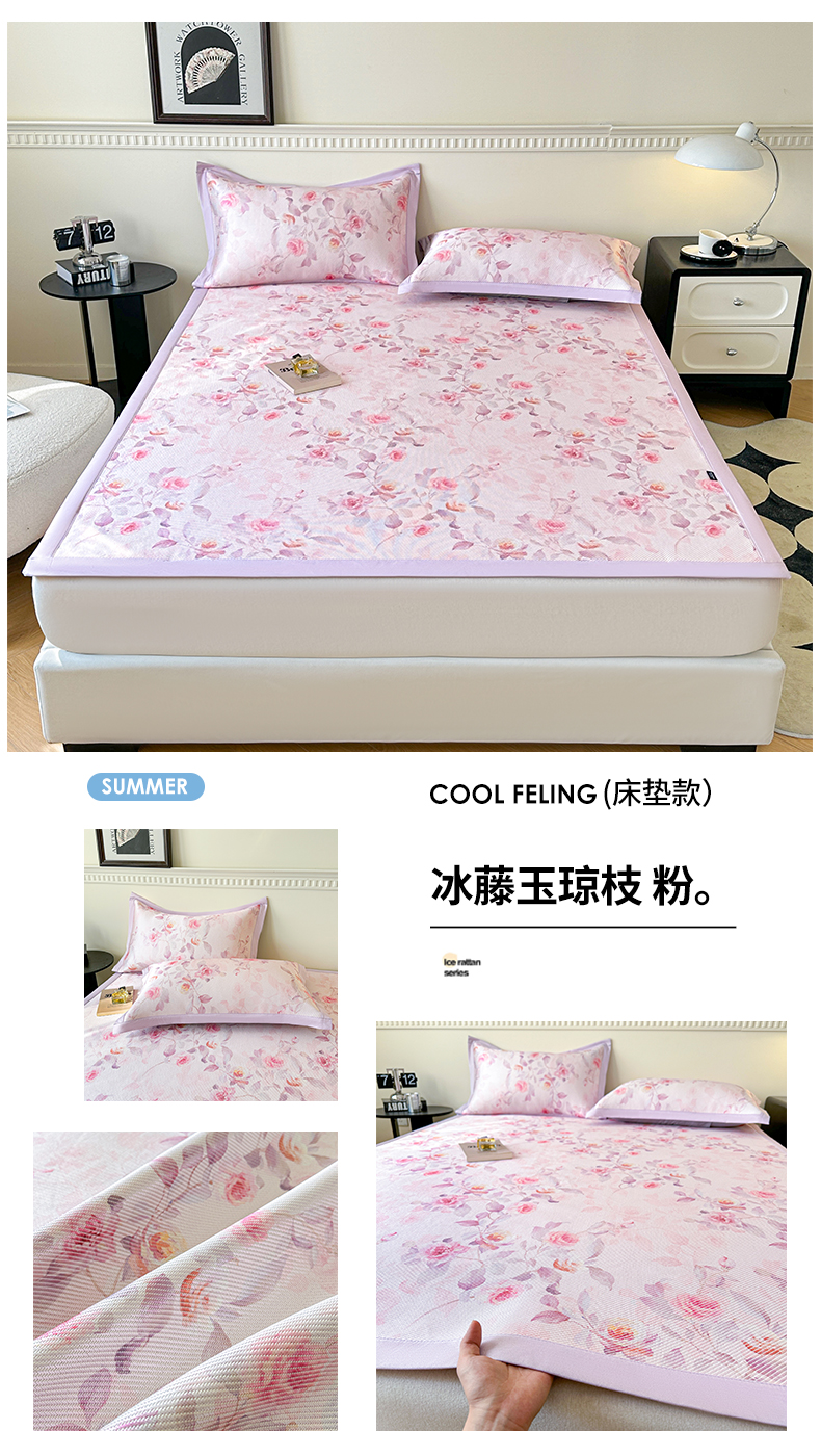宜代光年 2025新款数码印花冰藤席 床席-冰藤繁花 绿