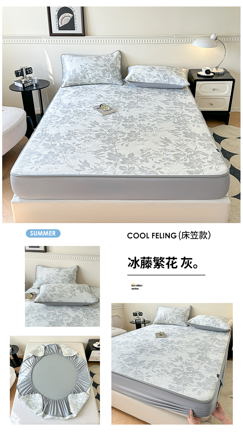 商品名称:宜代光年 2025新款数码印花冰藤席 床席-冰藤繁花 绿
