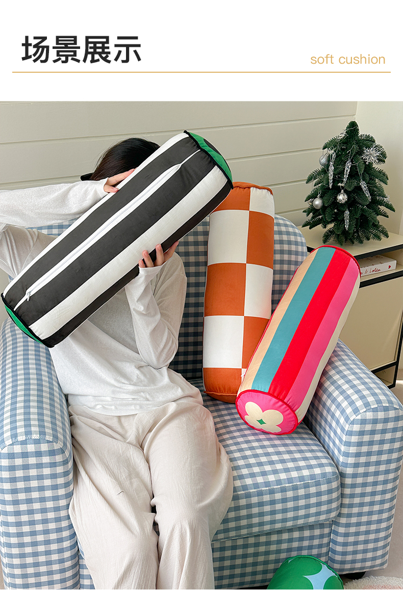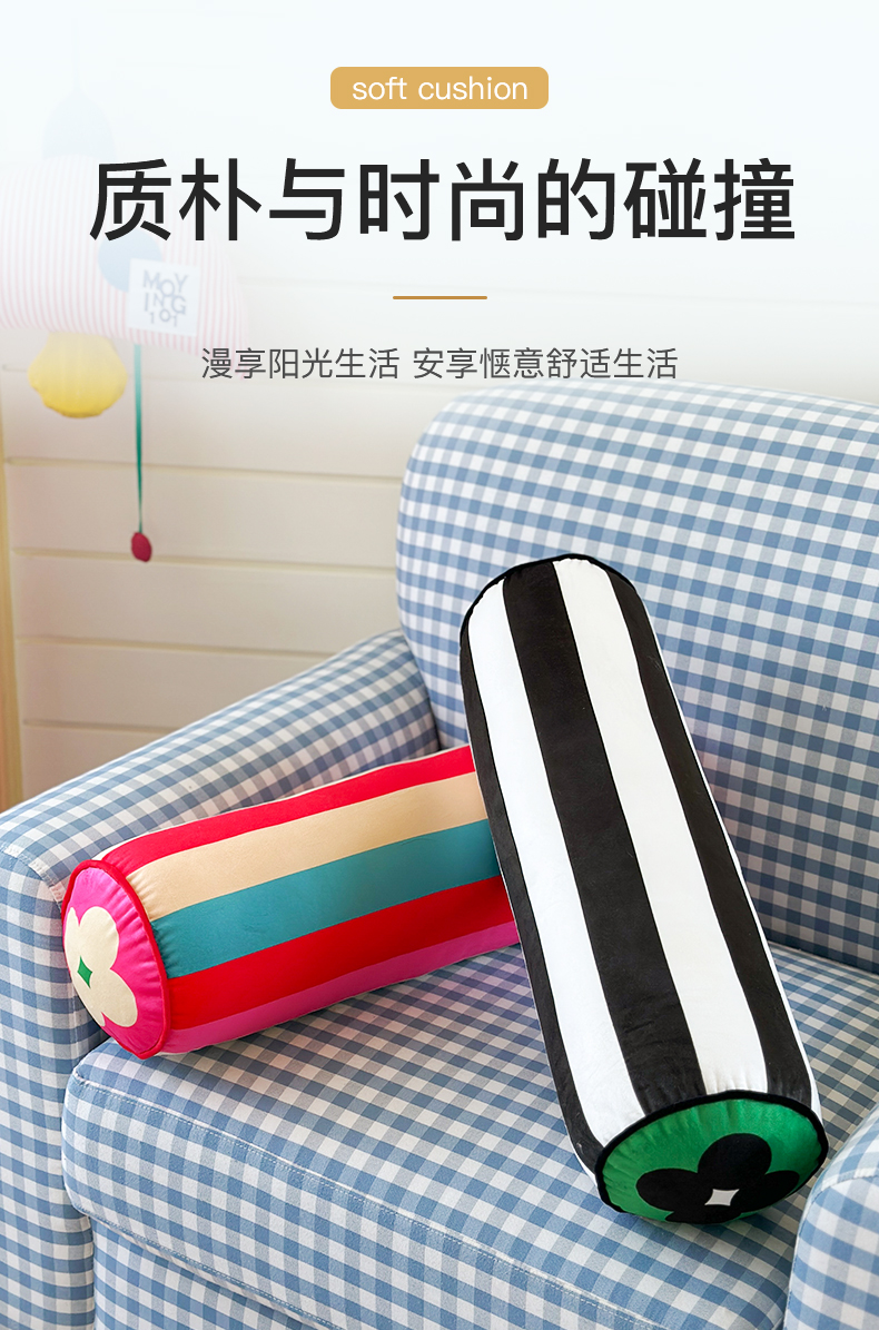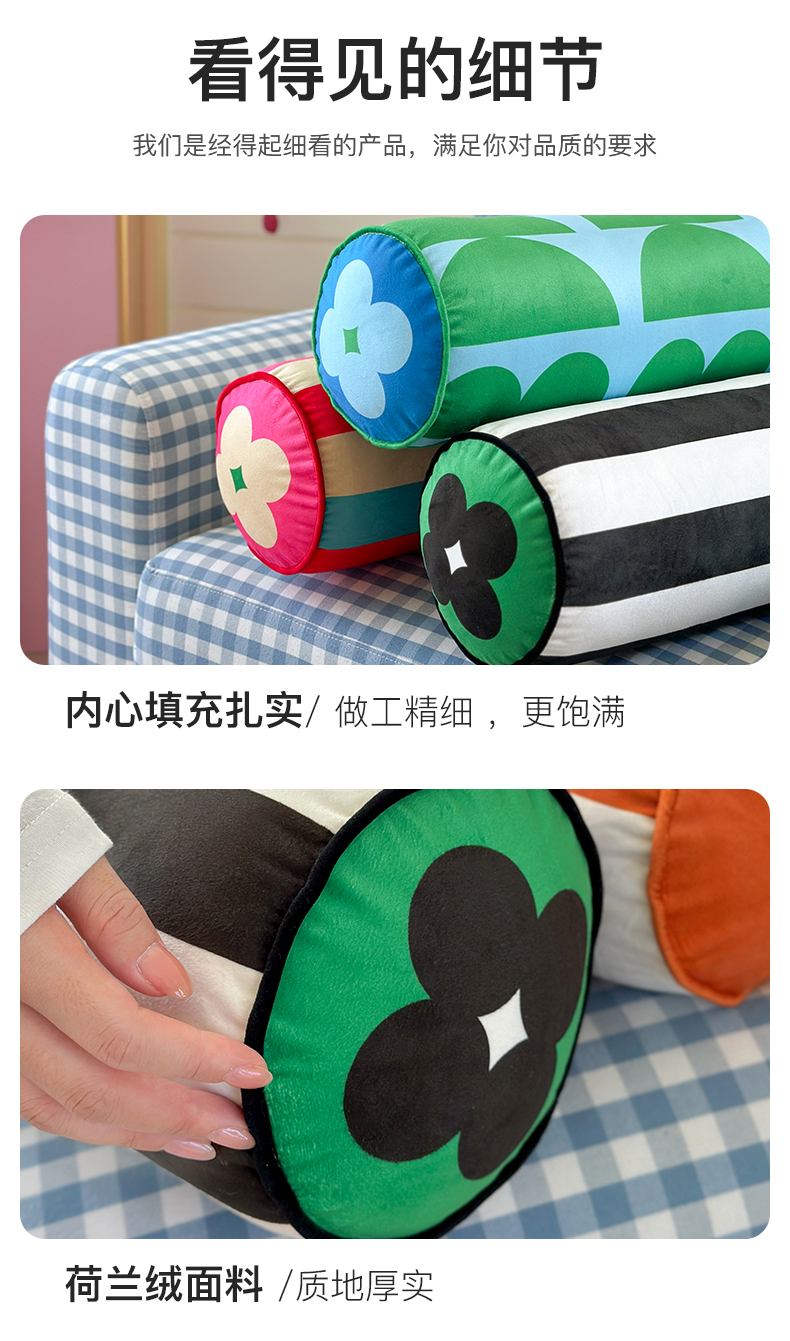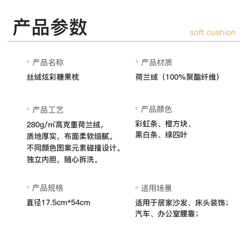 (总)美茉家居 2025新款荷兰绒丝绒炫彩糖果抱枕,彩虹条,橙方块,黑白条,绿四叶