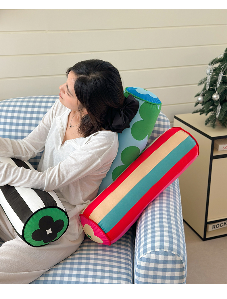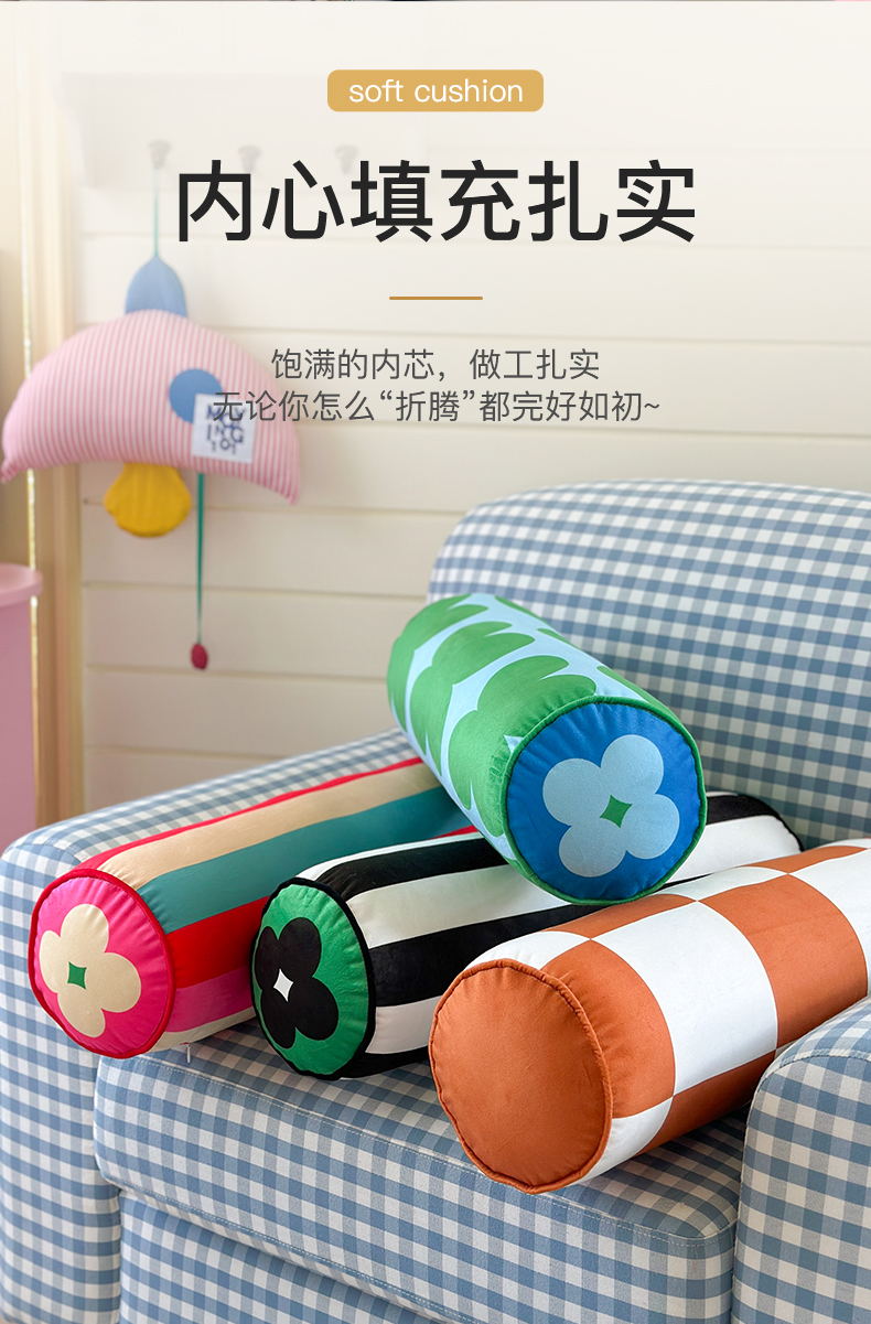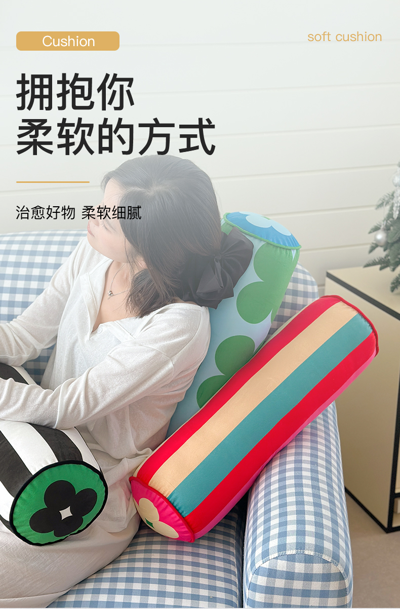 (总)美茉家居 2025新款荷兰绒丝绒炫彩糖果抱枕,彩虹条,橙方块,黑白条,绿四叶