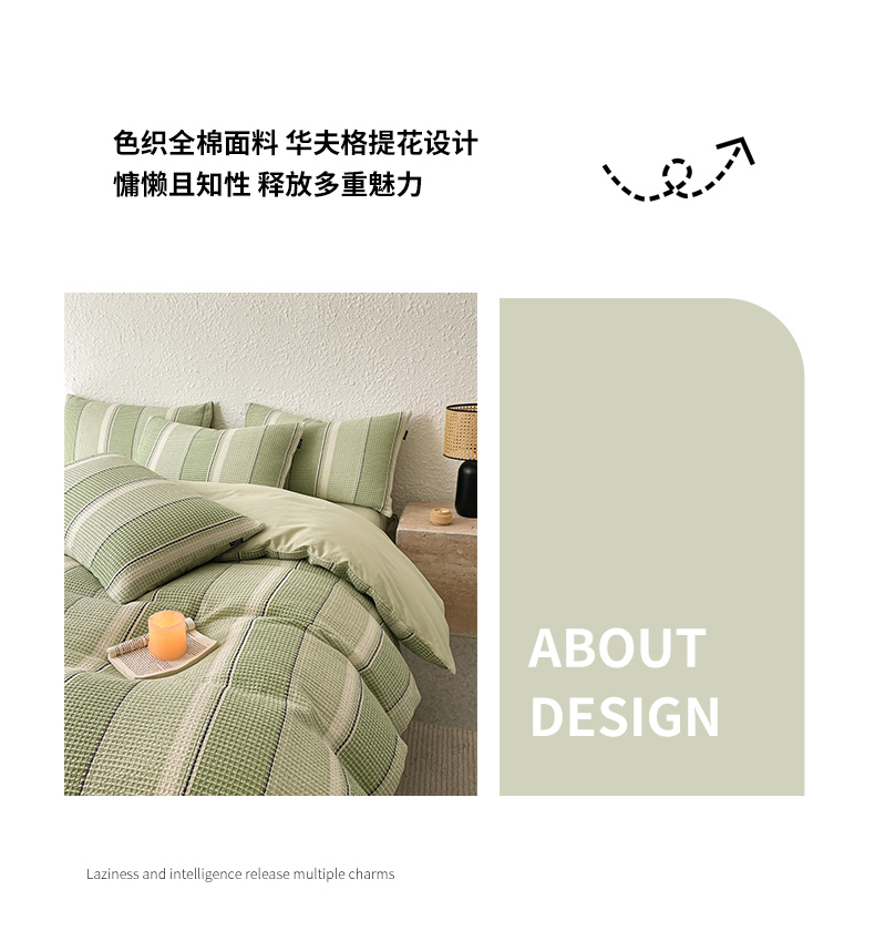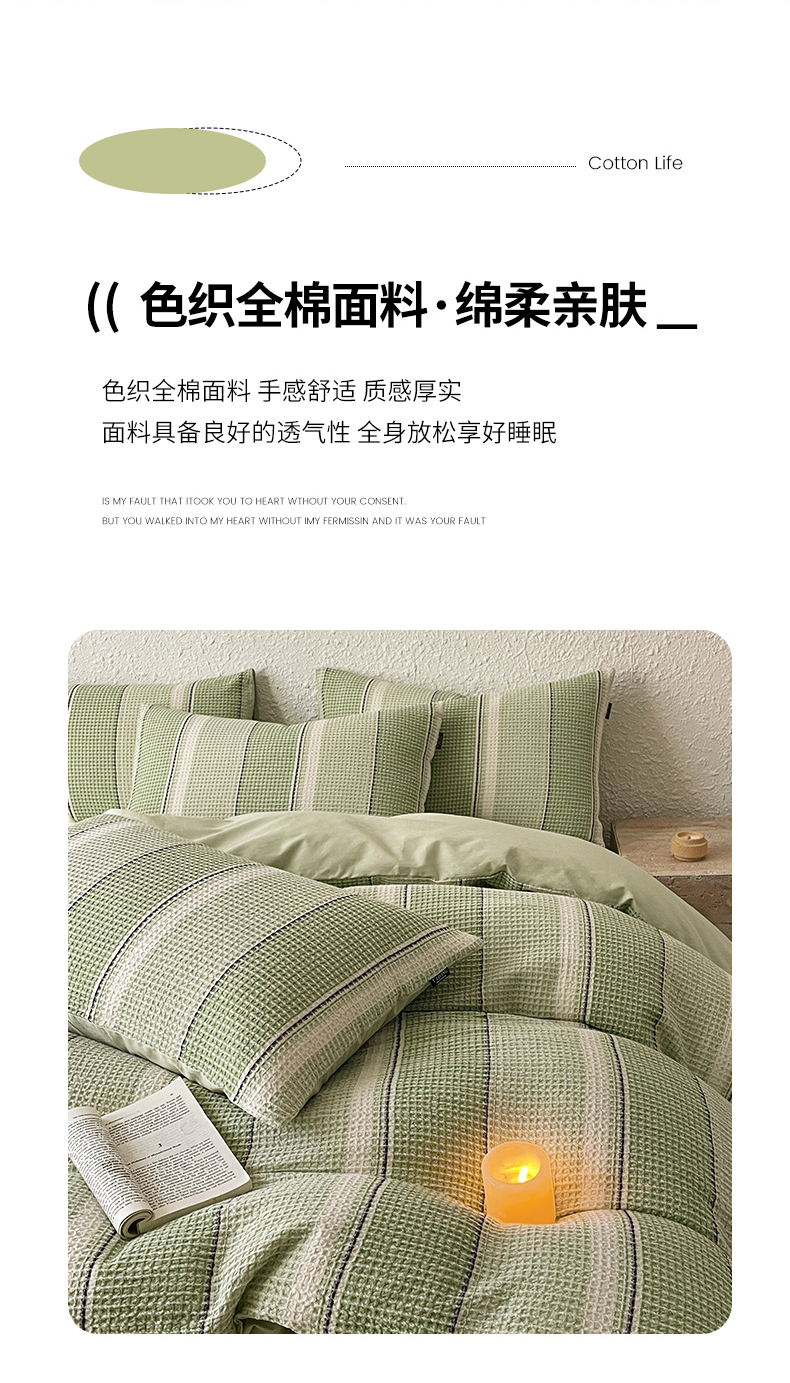 宜代光年 2025新款全棉色织提花华夫格四件套 华夫格-绿
