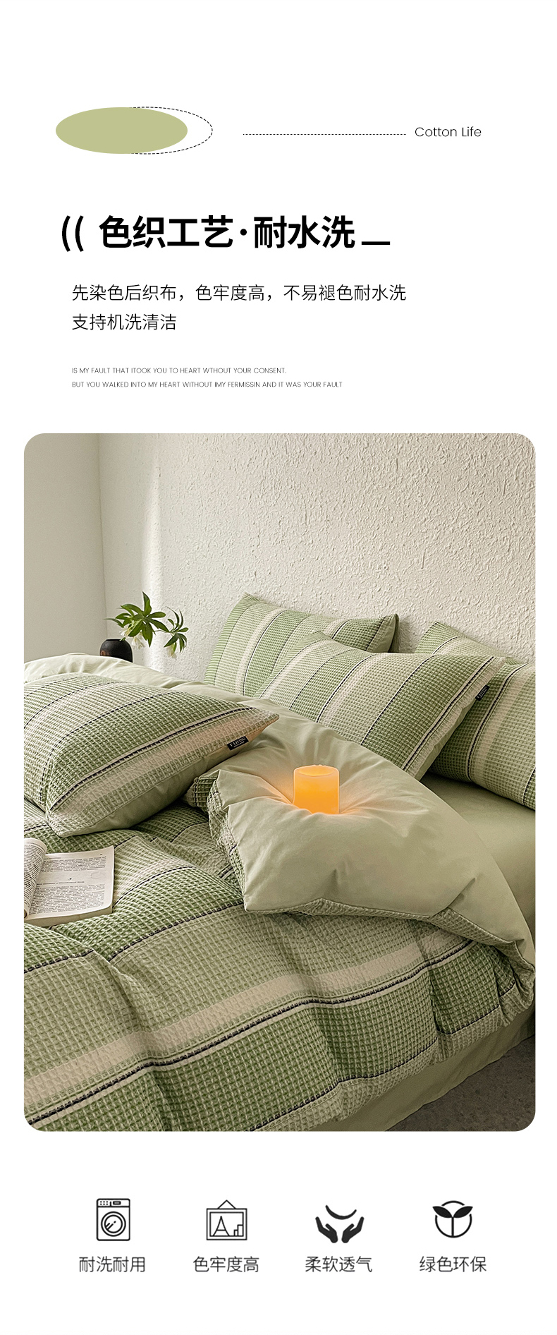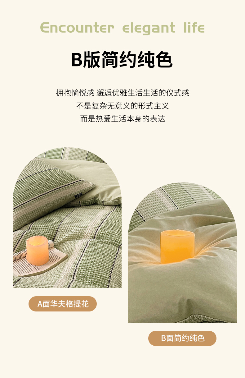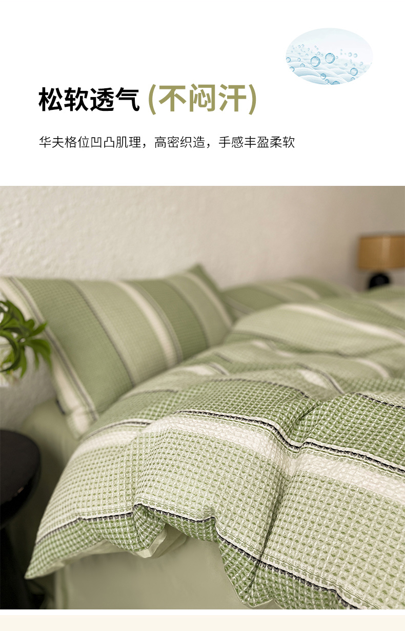 商品名称:宜代光年 2025新款全棉色织提花华夫格四件套 华夫格-绿