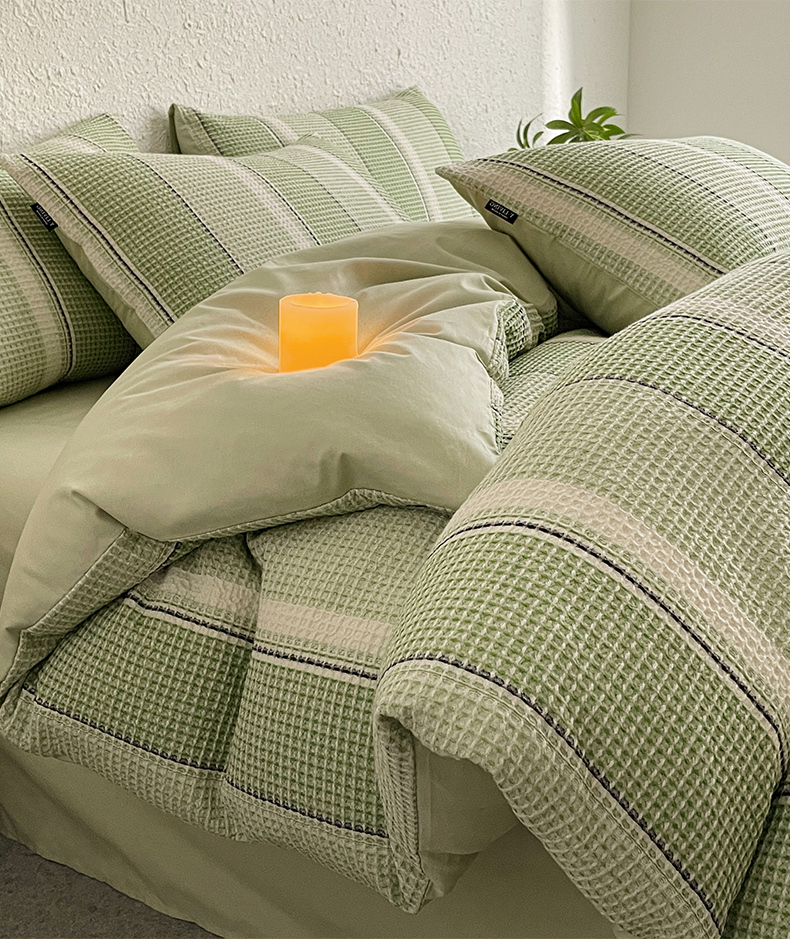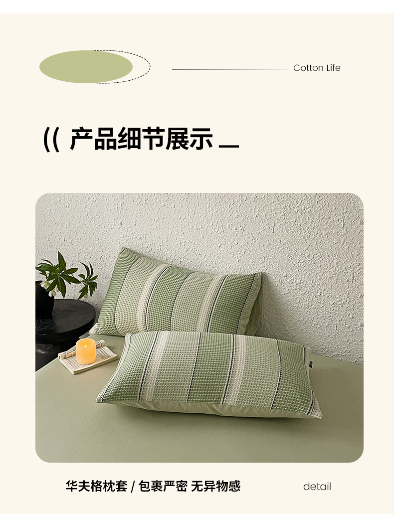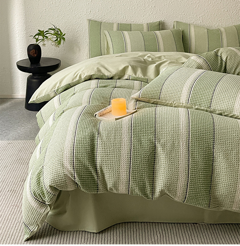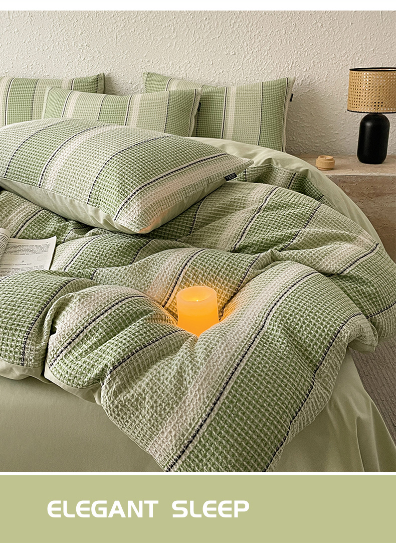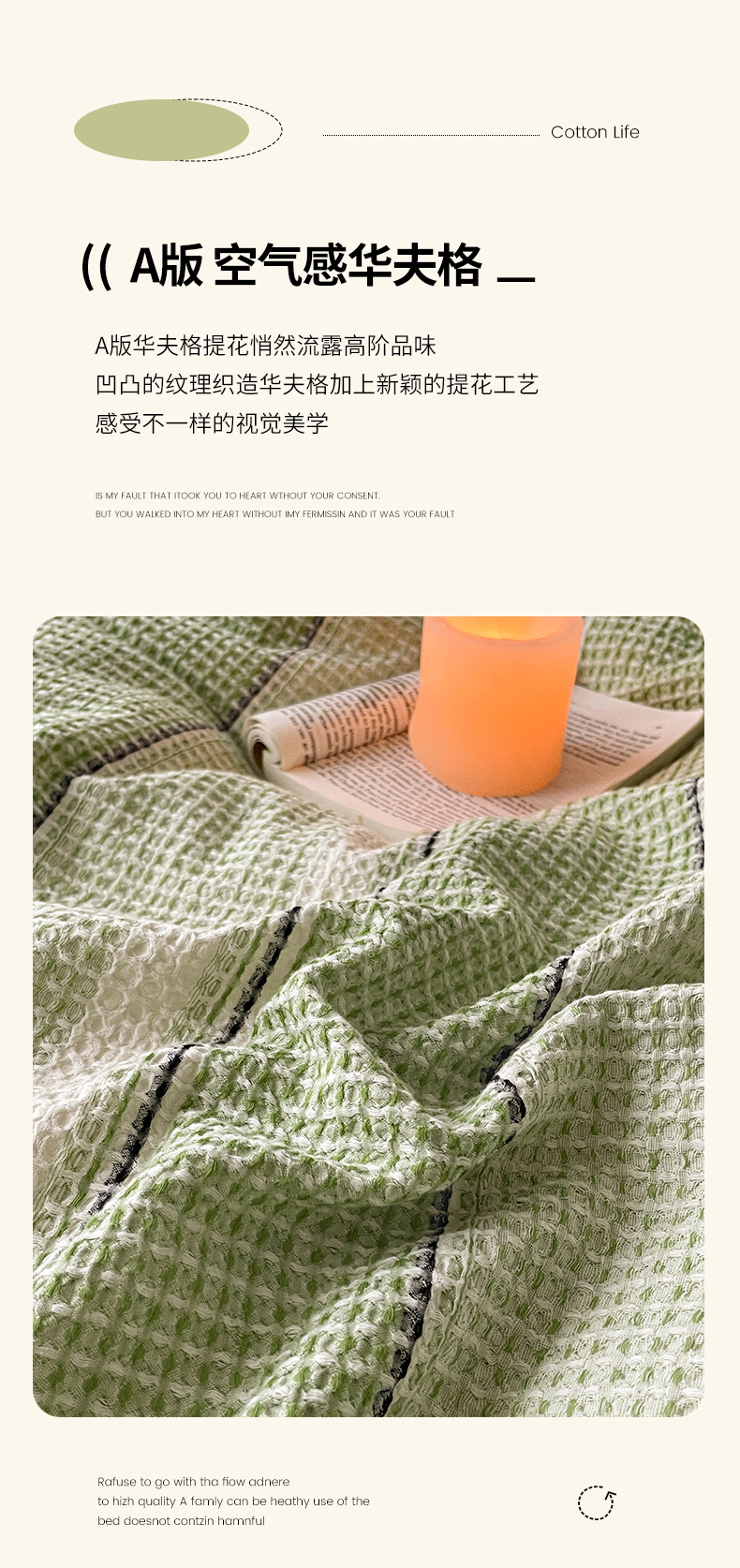 商品名称:宜代光年 2025新款全棉色织提花华夫格四件套 华夫格-绿