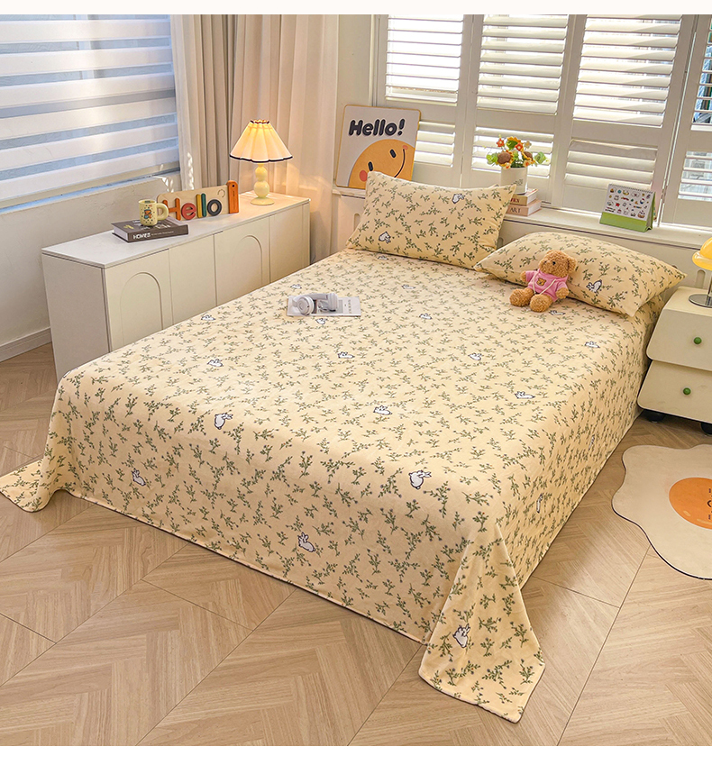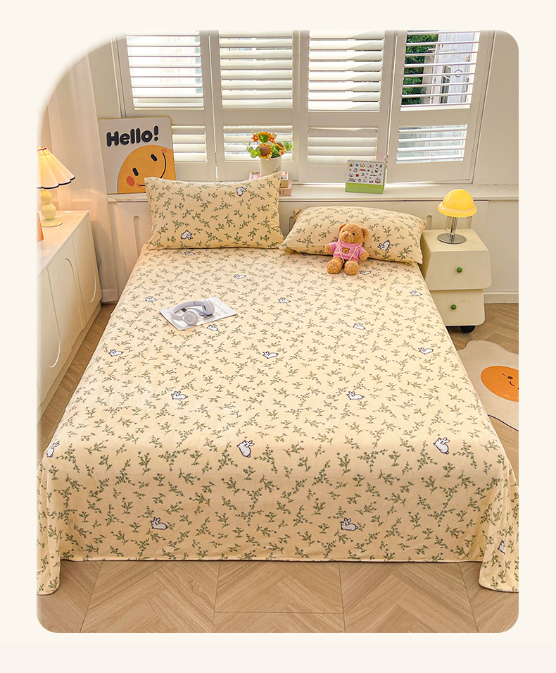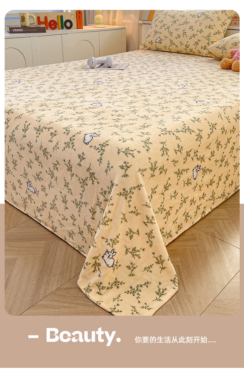 爱屋及屋 2025新款牛奶绒印花床单 山茶小兔