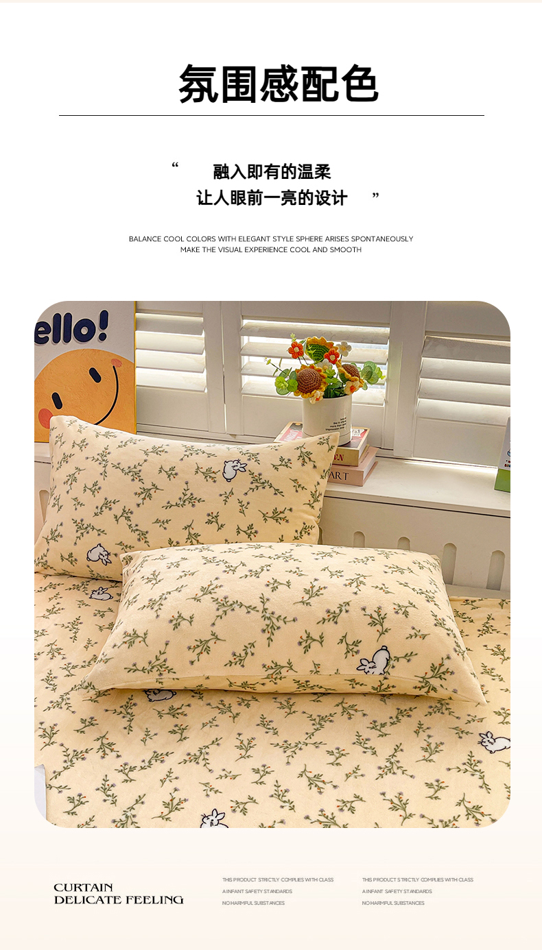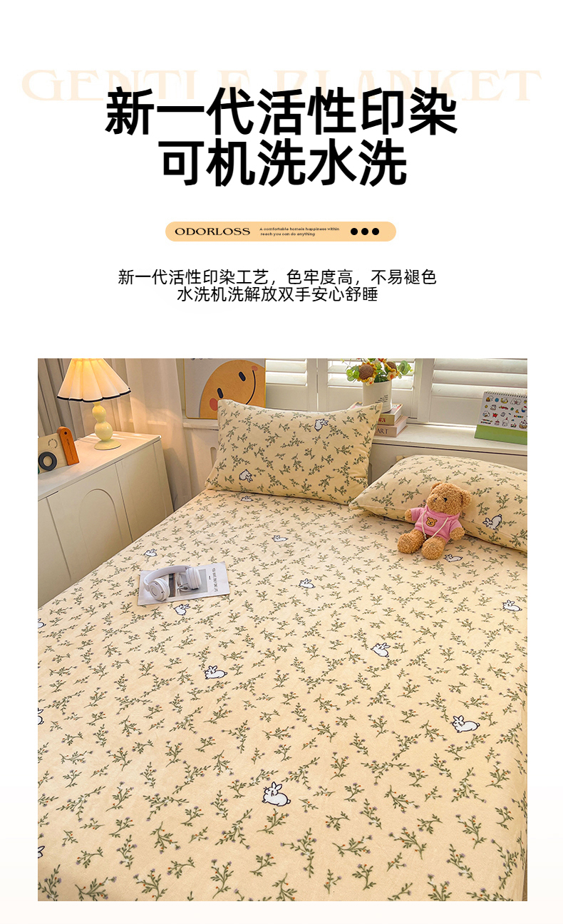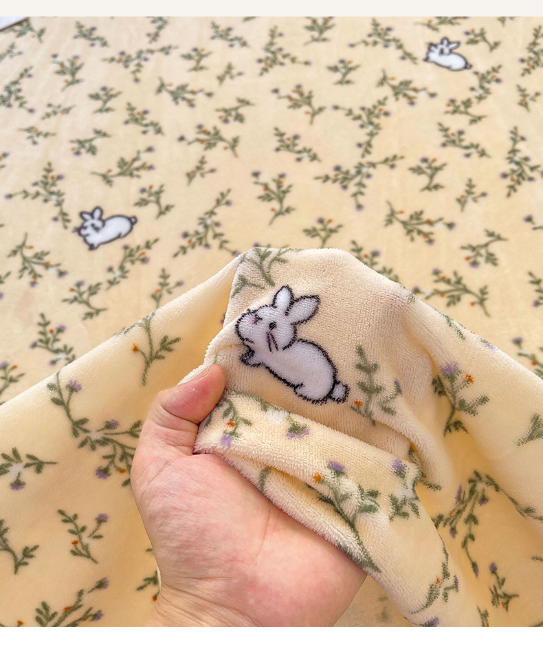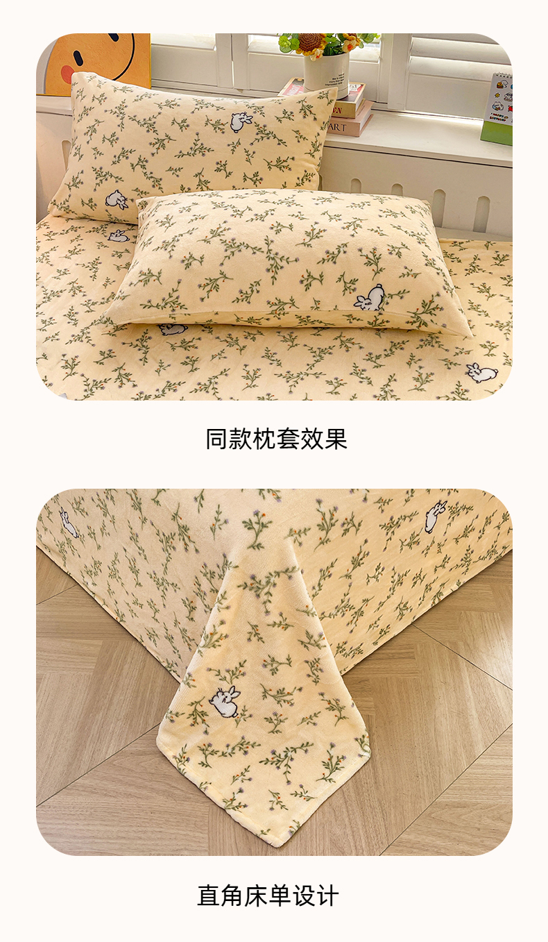 • 91家纺网 家纺一手货源 找家纺 爱屋及屋 2025新款牛奶绒印花床单 山茶小兔