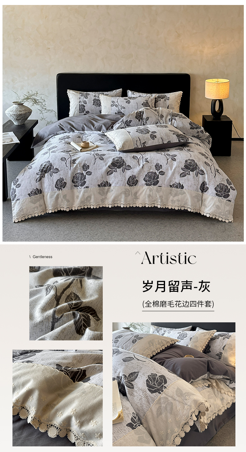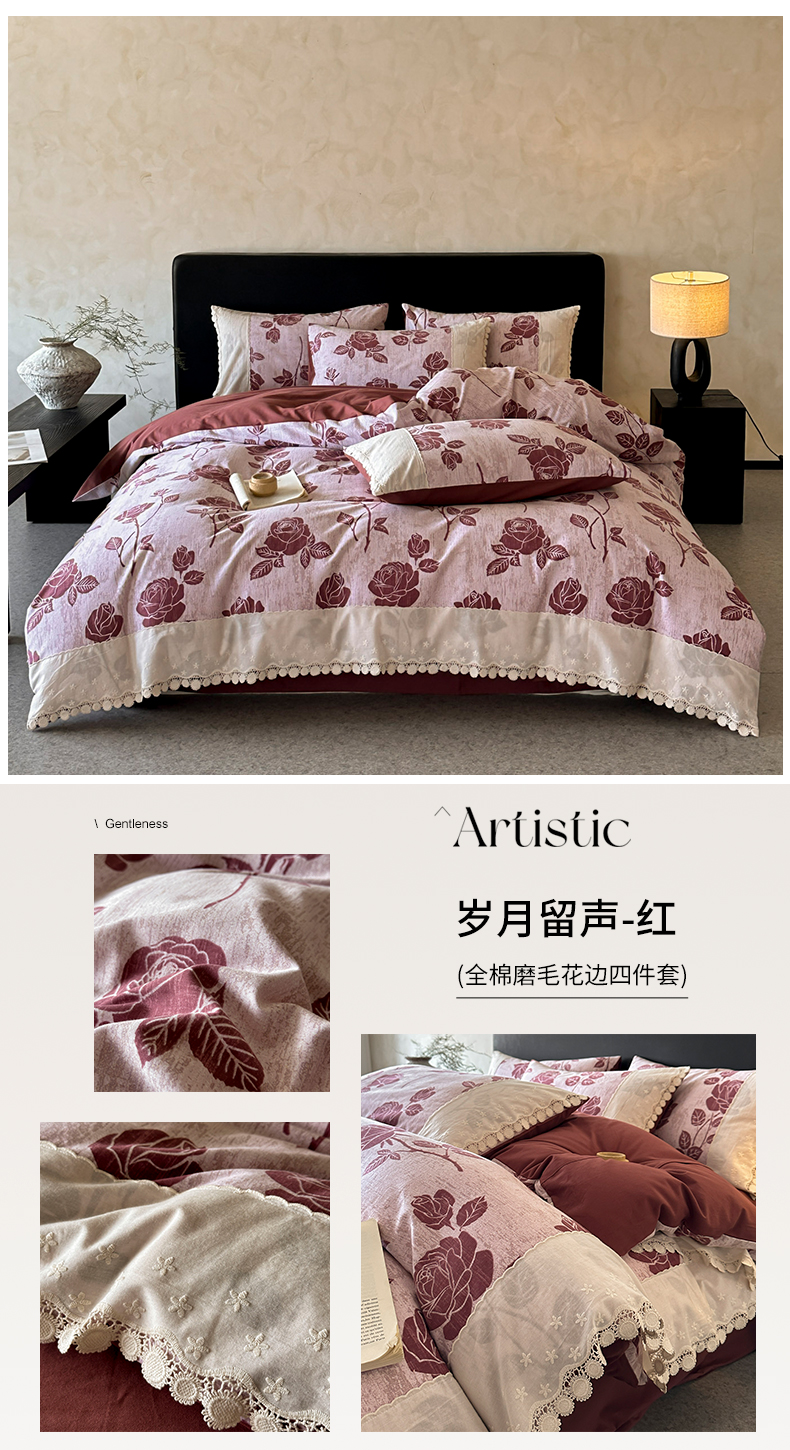 商品名称:宜代光年 2025新款全棉磨毛花边四件套 花漾