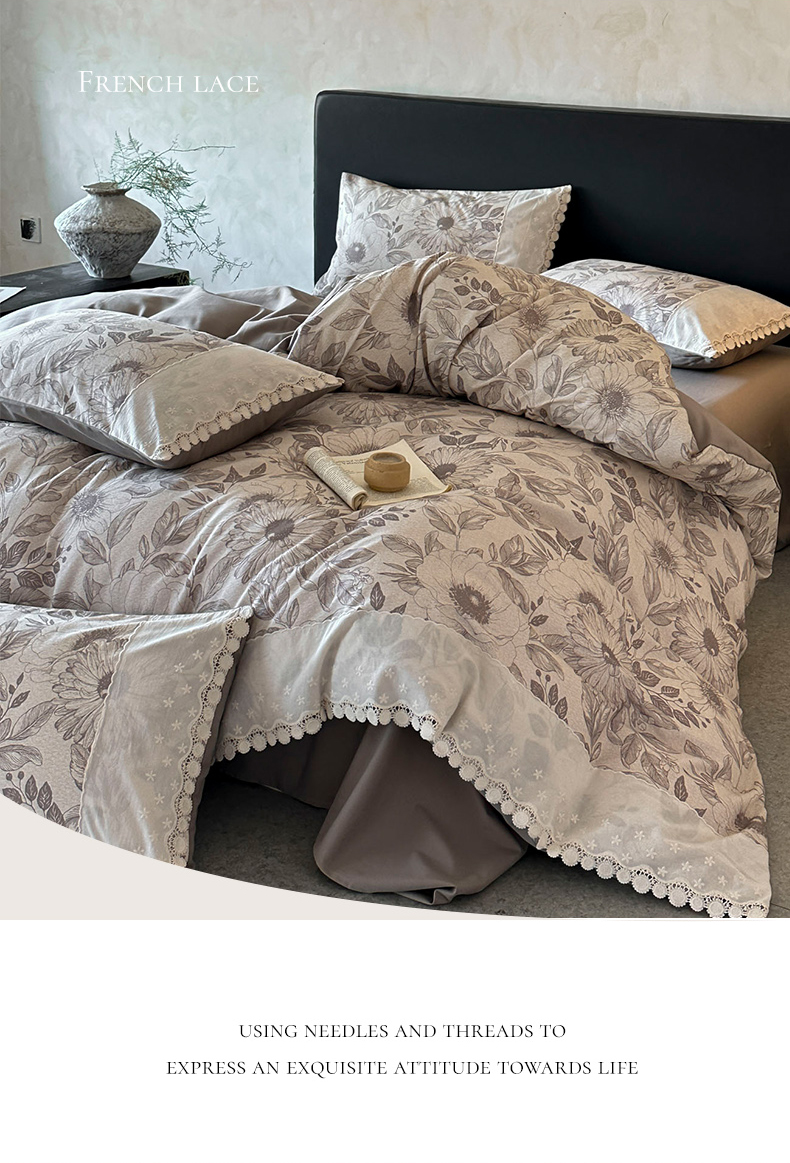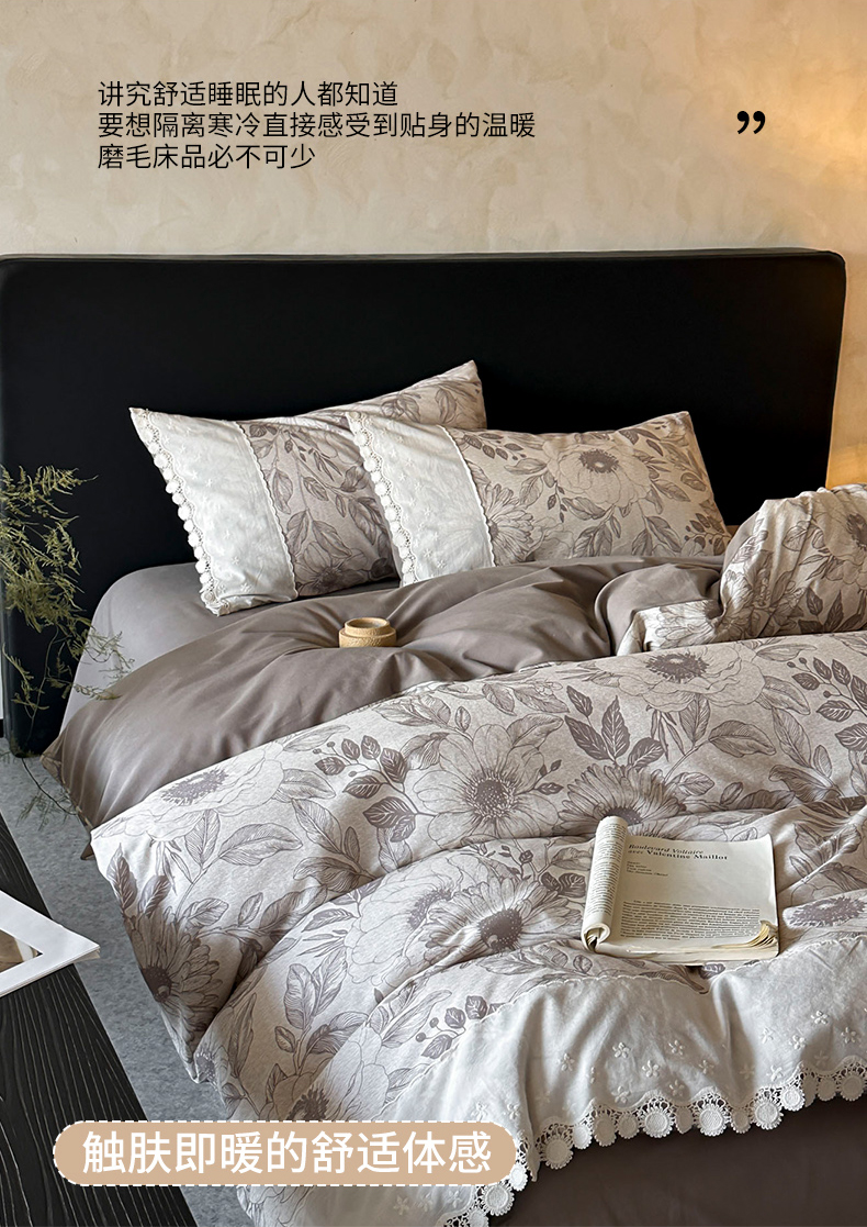 宜代光年 2025新款全棉磨毛花边四件套 花漾