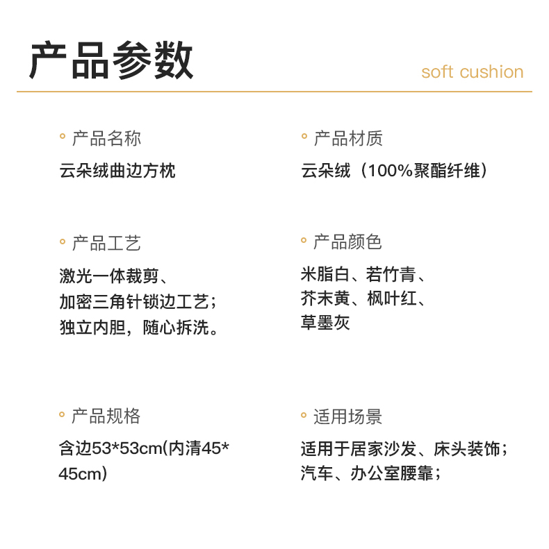 (总)美茉家居 2025新款云朵绒曲边方枕抱枕,草墨灰,枫叶红,芥末黄,米脂白,若竹青