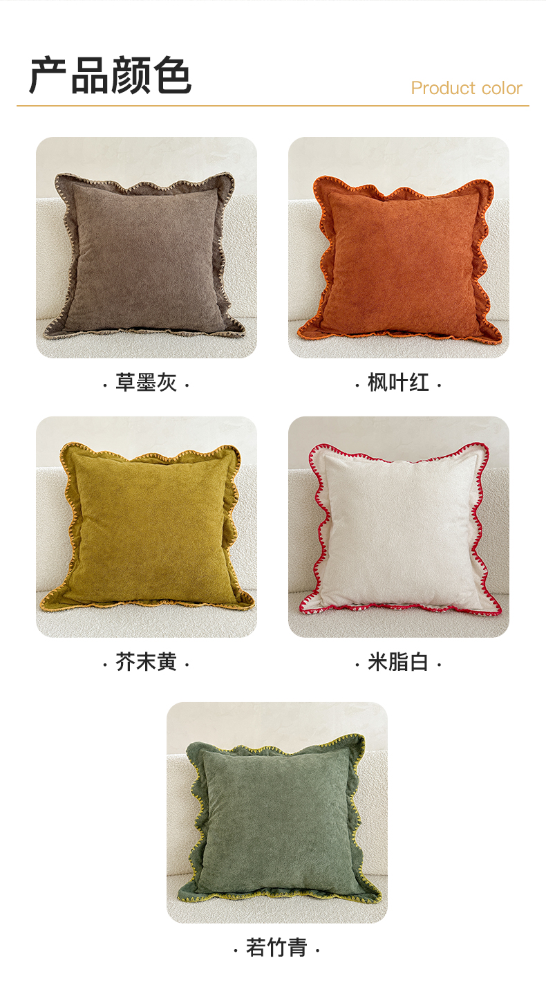 (总)美茉家居 2025新款微澜飞边方枕抱枕,卡其,米白,墨绿,柿红,棕咖