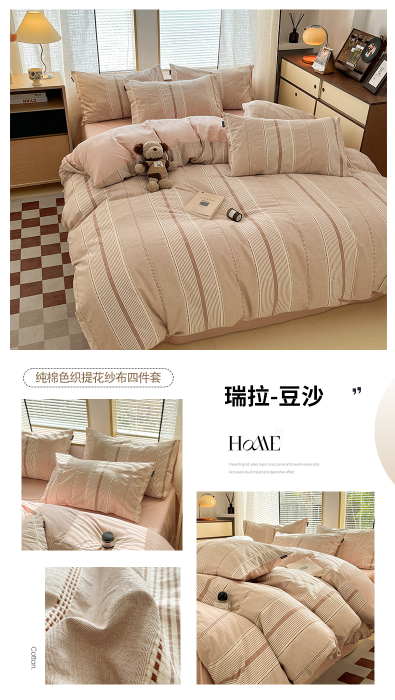 商品名称:宜代光年 2025新款全棉纯棉色织提花瑞拉系列四件套 瑞拉-豆沙