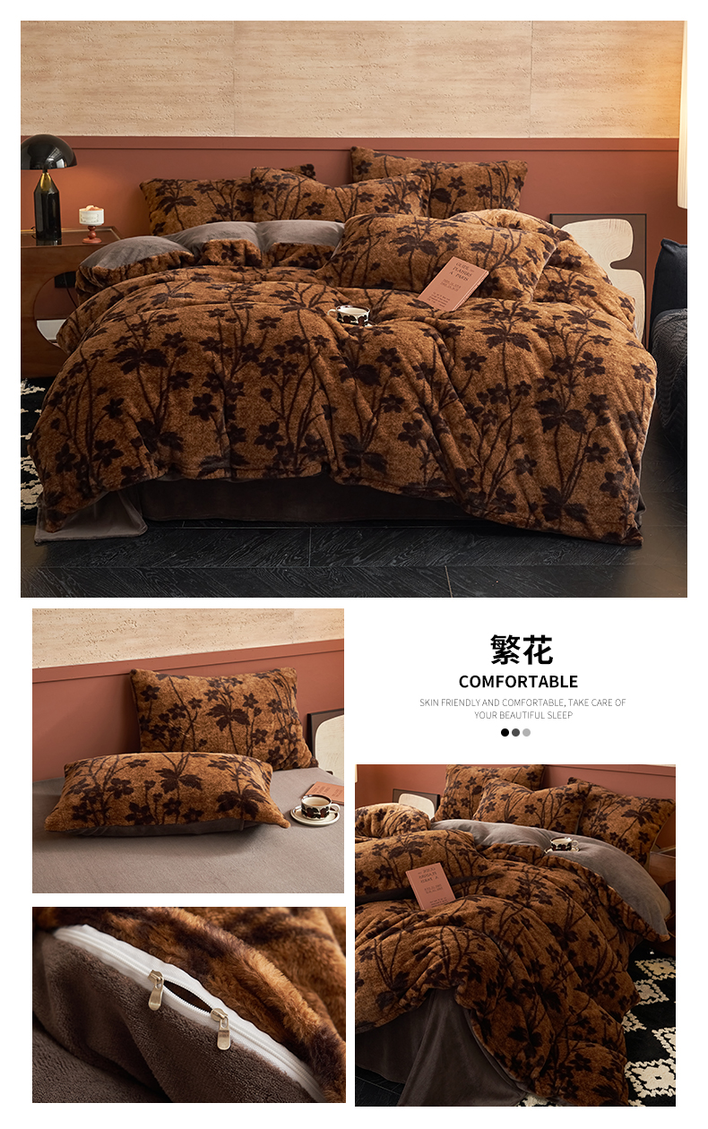(总)金鹰 2025新款A类雕花牛奶绒烂花兔毛包边四件套,羽毛,波澜壮阔,繁花,蝴蝶梦,简爱,兰花,玫瑰物语,梦幻森林,清晨玫瑰,羽叶,仲夏晨歌