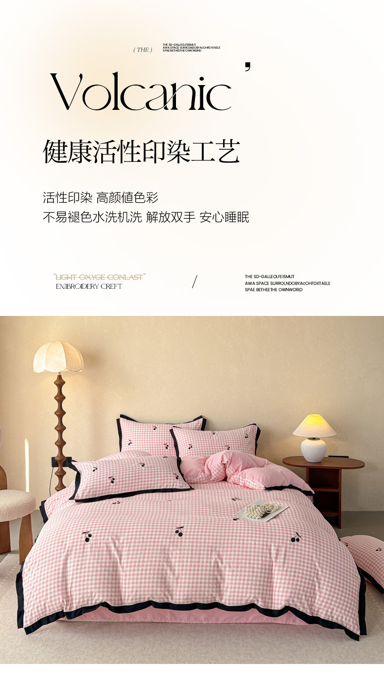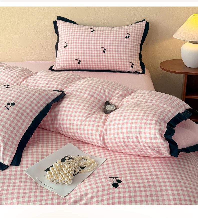 当前位置: 91家纺网 > 商品网购 > 床品套件 > 四件套 > 其它四件套 > 米可2025新款水洗棉绣花花边款四件套 樱桃-粉