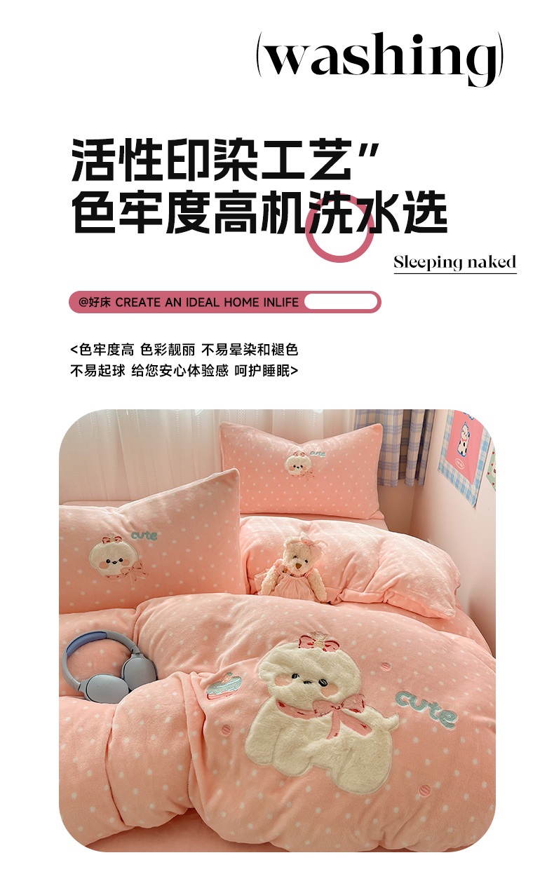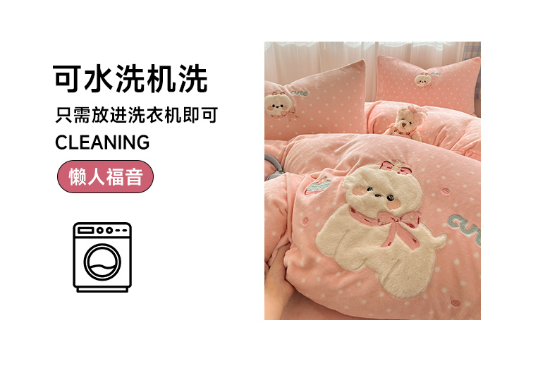 商品名称:红嘴企鹅 2025新款精致贴布绣牛奶绒四件套 Cute狗-粉