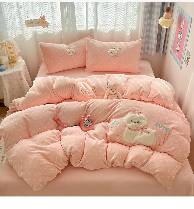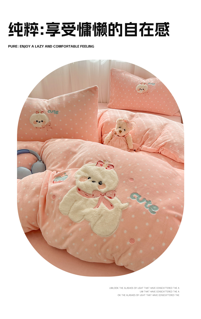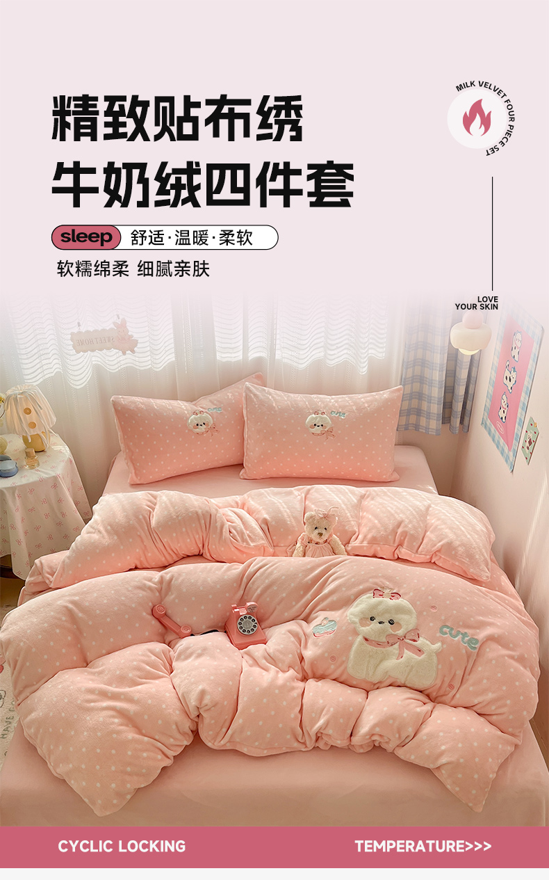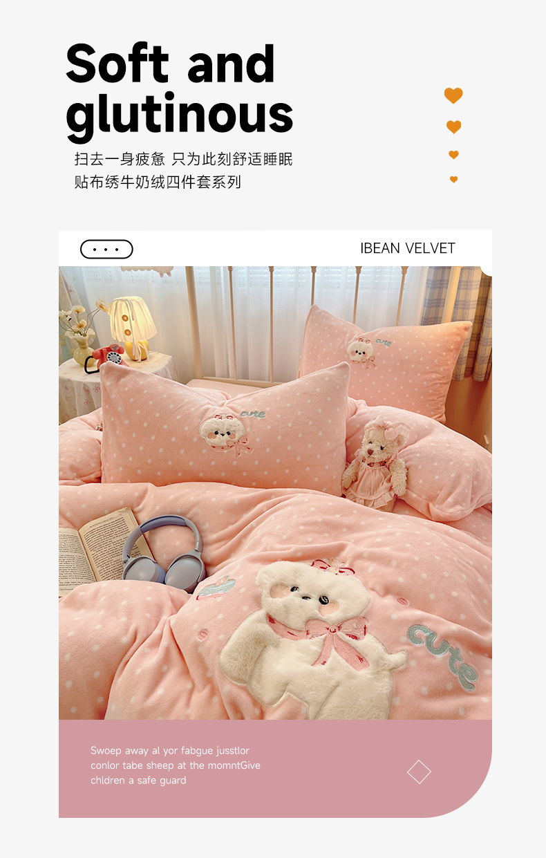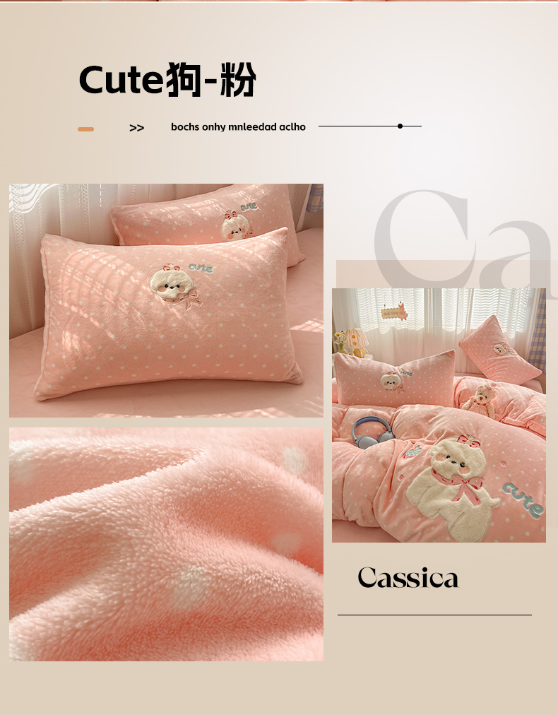 红嘴企鹅 2025新款精致贴布绣牛奶绒四件套 Cute狗-粉