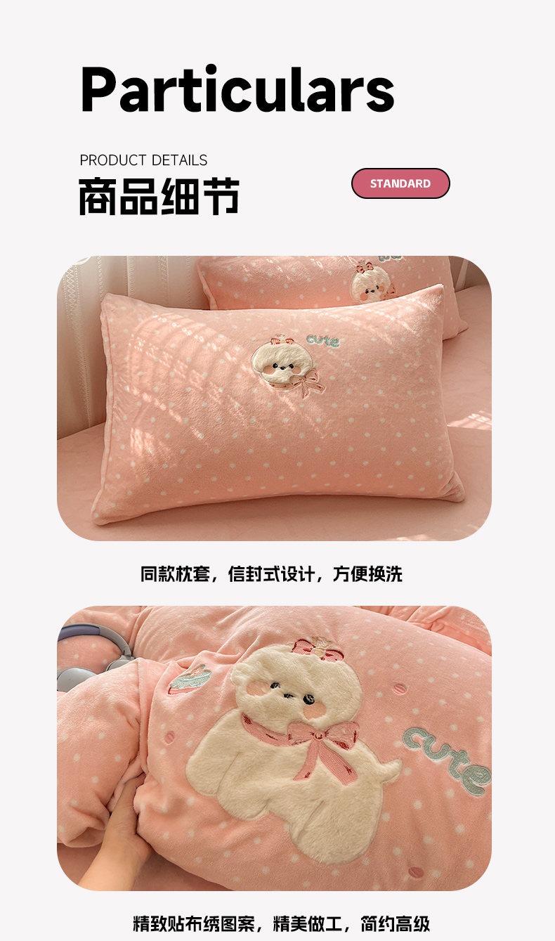 (总)红嘴企鹅 2025新款精致贴布绣牛奶绒四件套,棒棒糖-粉,Bunny兔-粉,Bunny兔-蓝,Bunny兔-紫,Cute狗-粉,Cute狗-蓝,Cute狗-紫