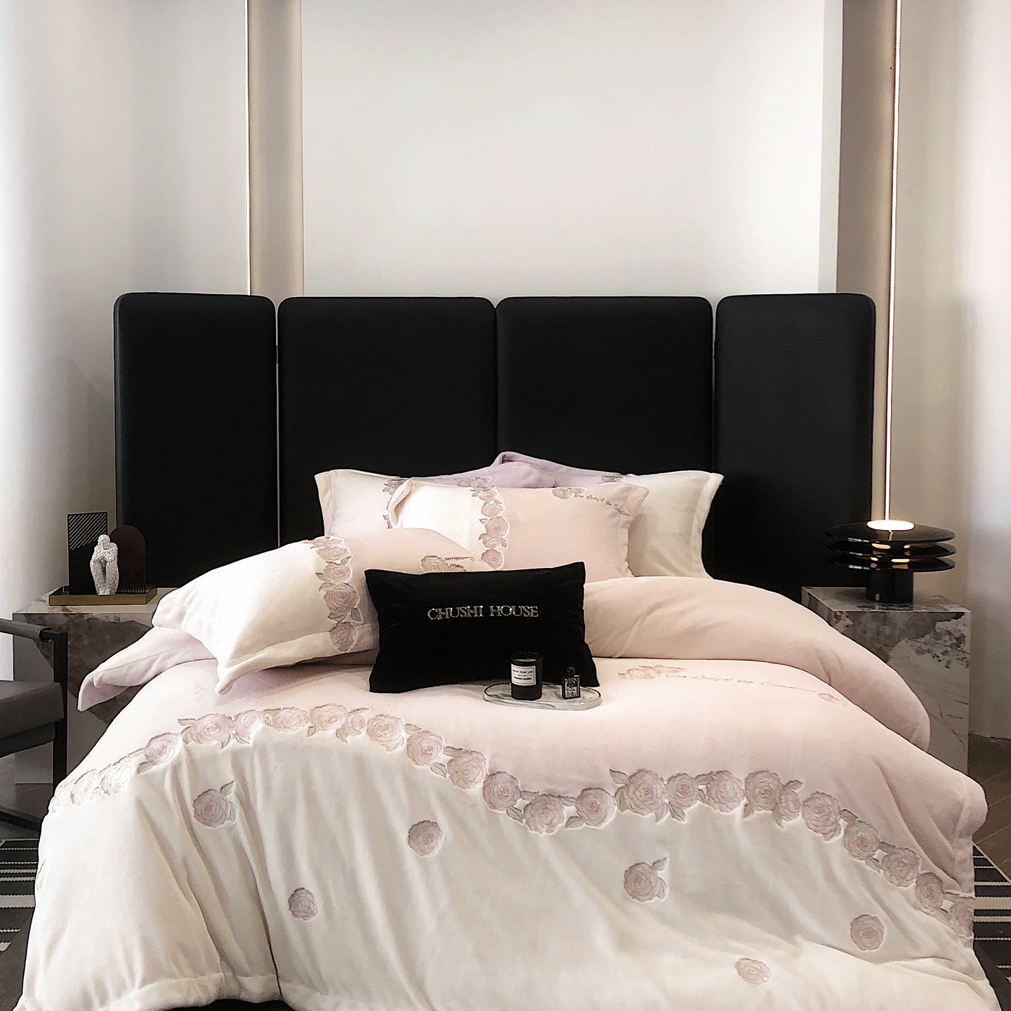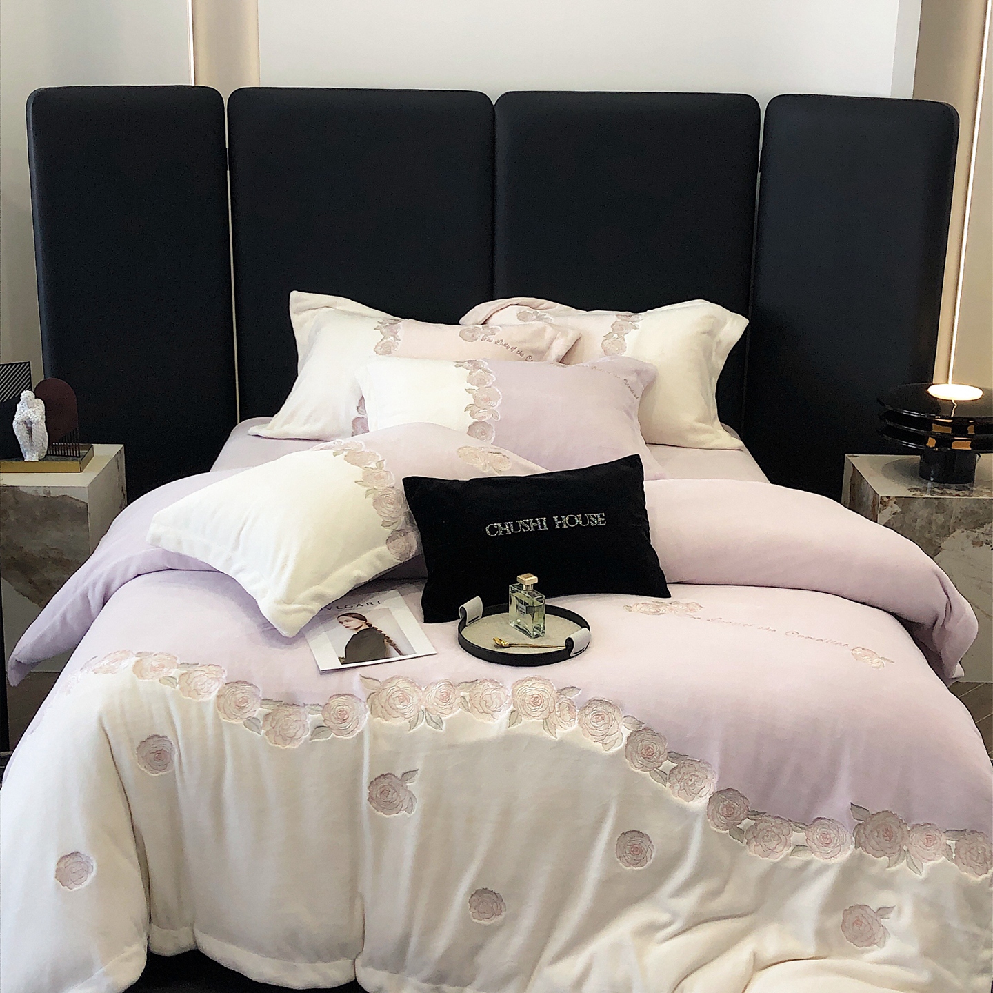 (总)初拾 2025新款230g牛奶绒“高级感“绣花四件套—曼岛邂逅,曼岛邂逅-奶油粉,曼岛邂逅-气质灰,曼岛邂逅-香槟