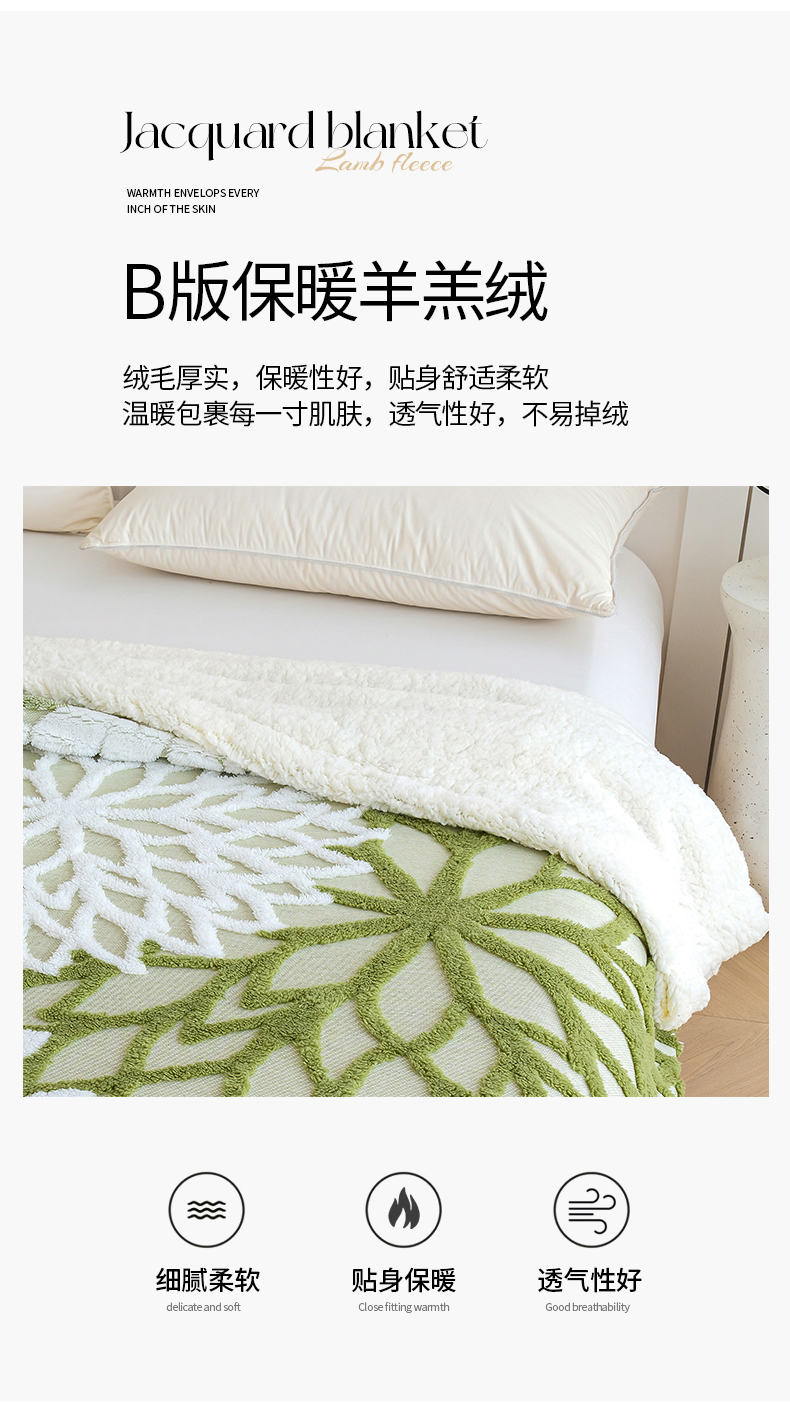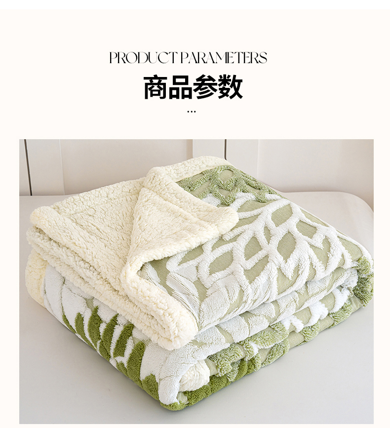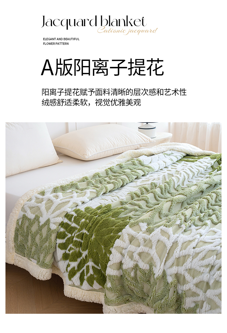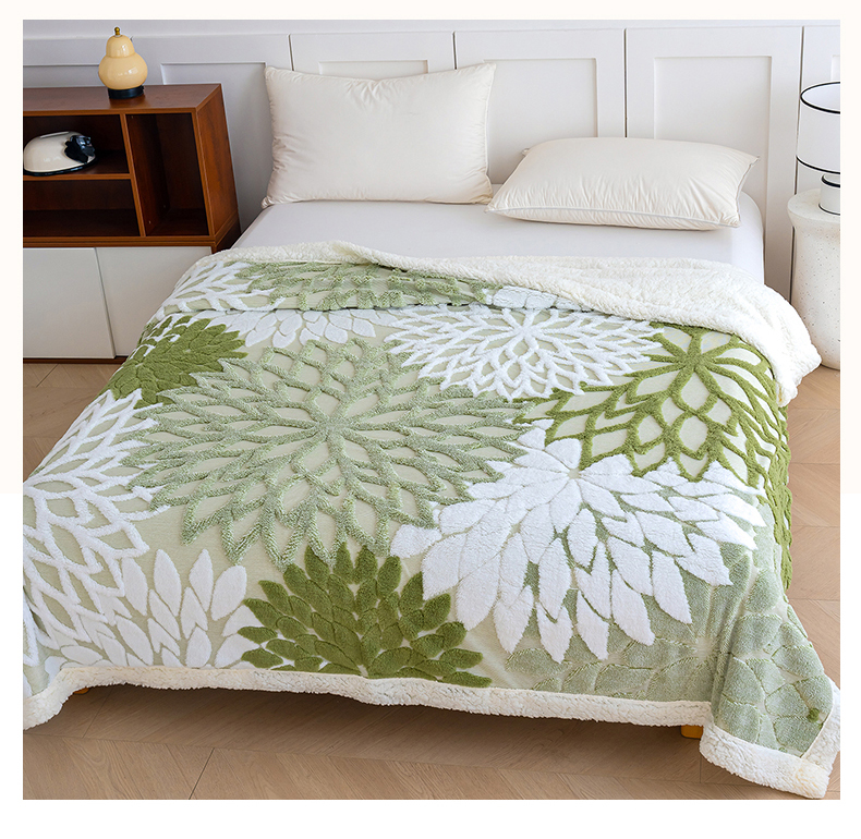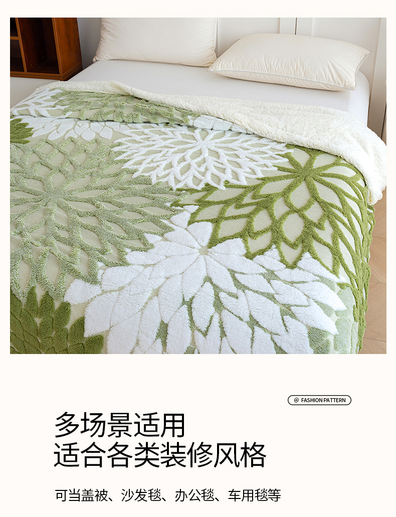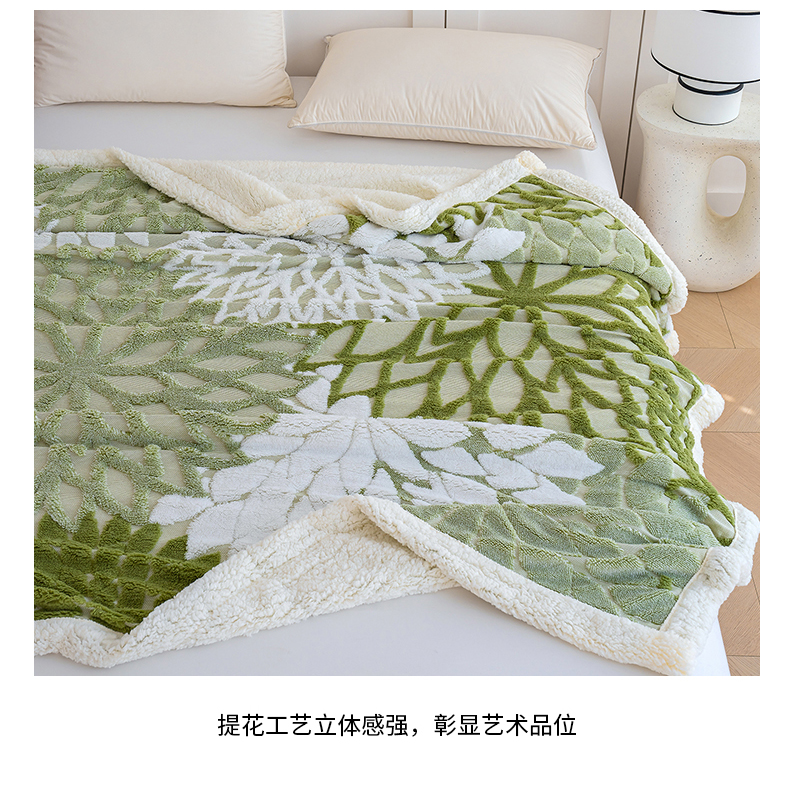 商品名称:枋梢家纺 2025新款万花筒阳离子提花镂空塔芙绒羊羔绒保暖午睡双层毛毯办公室盖毯 万花筒-浅绿