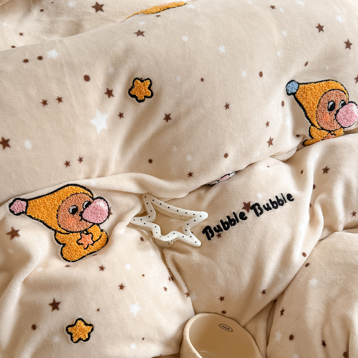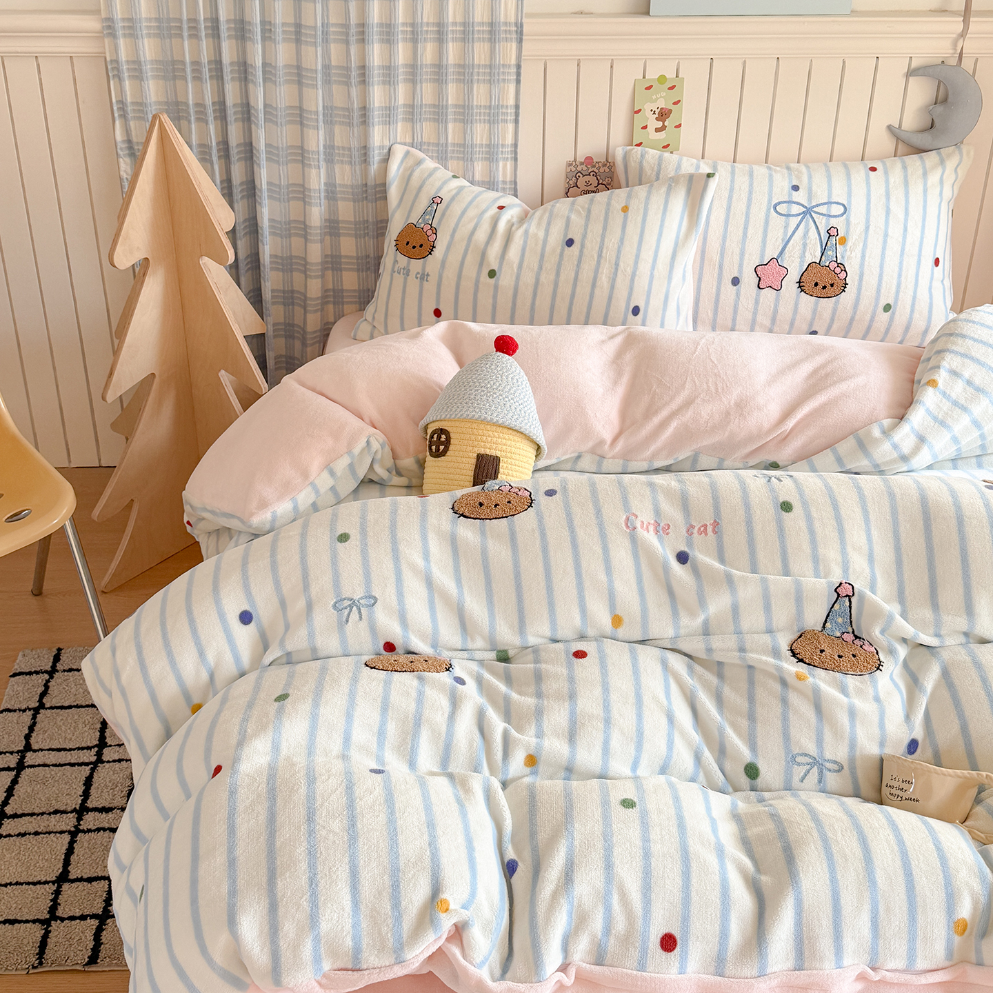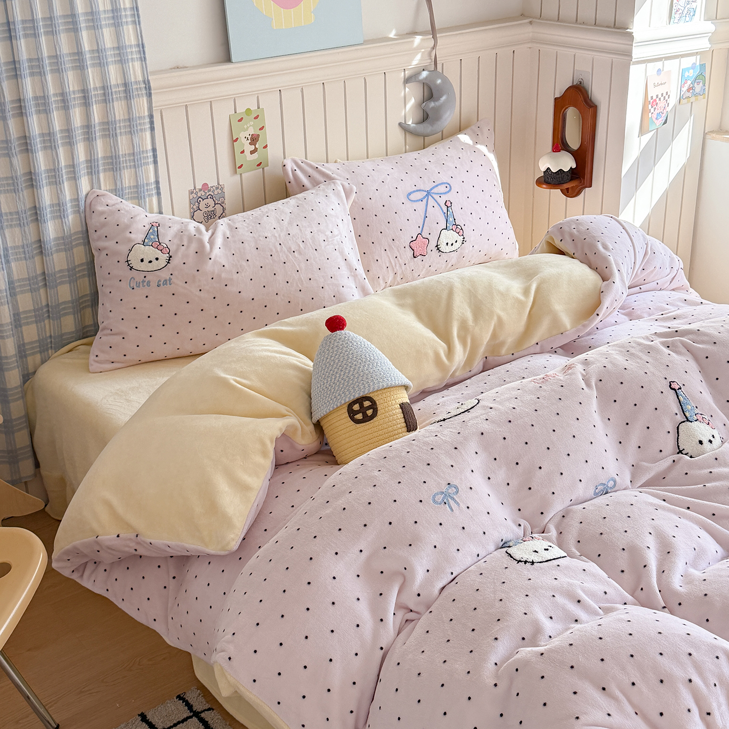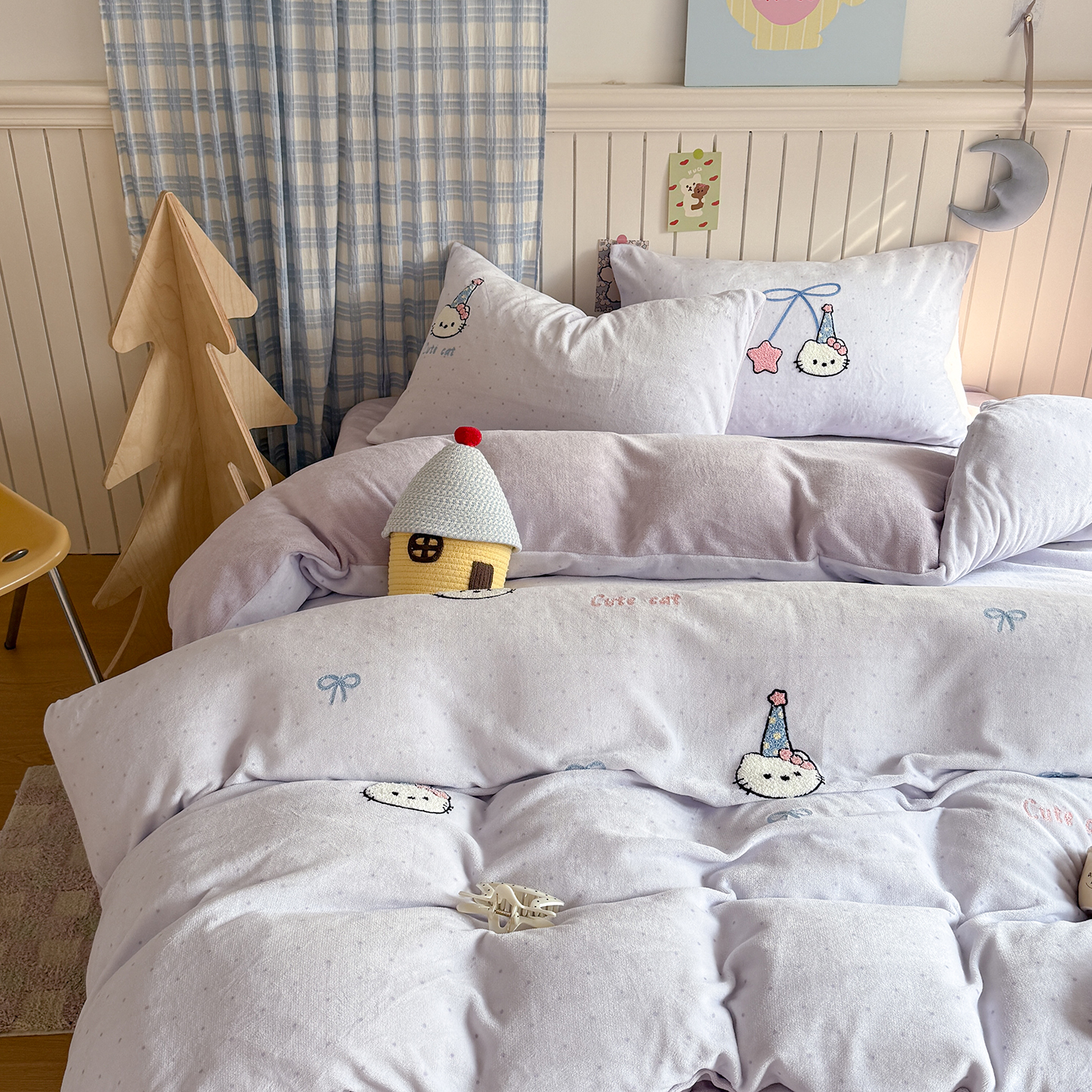 潘朵拉家纺 2025新款A类牛奶绒毛巾绣系列四件套 甜梦喵