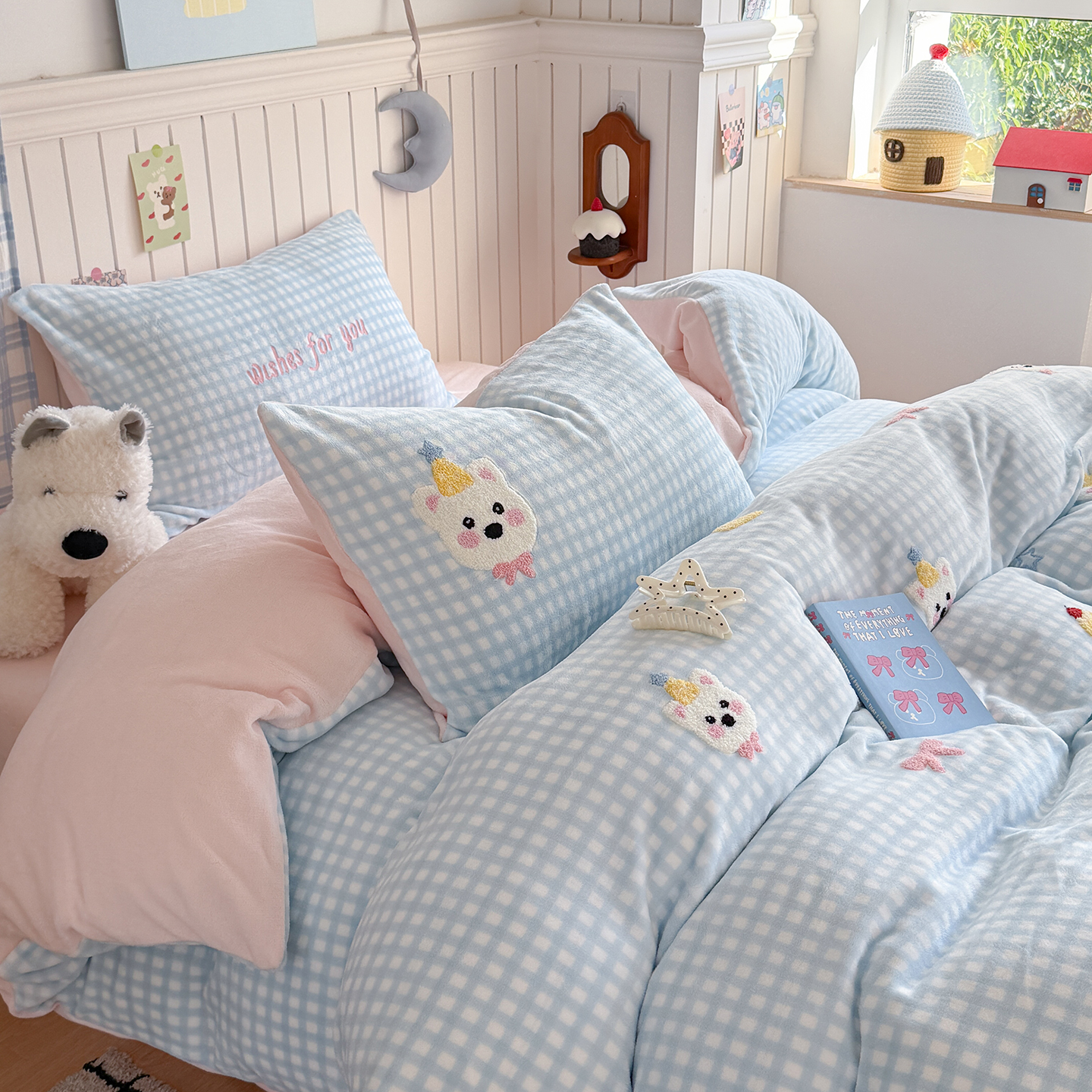 (总)潘朵拉 2025新款ins风牛奶绒床盖四件套,饼干熊,点点狗,粉萌宝,花漾,墨莲,奶酪狗,山茶予你,条纹狗,小狗杰西,紫薇