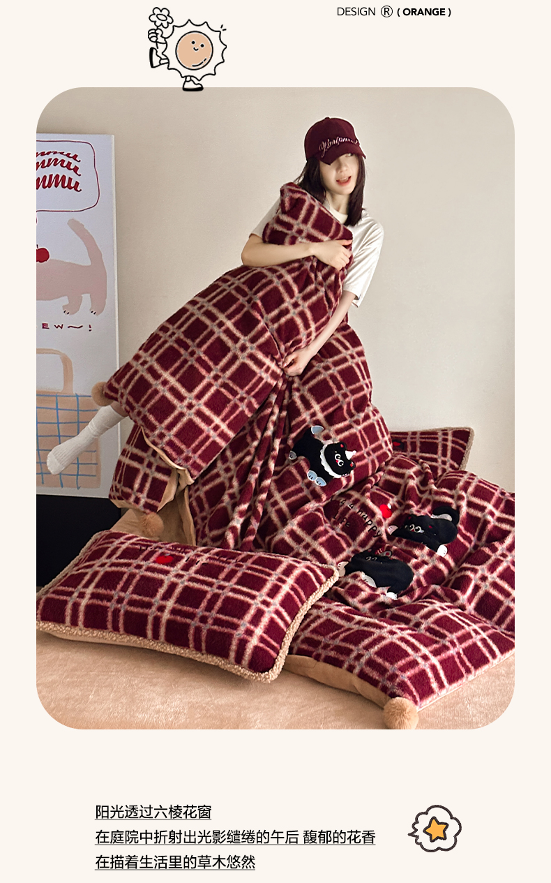 (总)宇航家纺 2025新款美拉德色系仿羊毛绒牛奶绒毛毯盖毯办公毯,盖毯-煤球小猫,盖毯-呆萌猫咪,盖毯-福宝小狗,盖毯-三只小猫