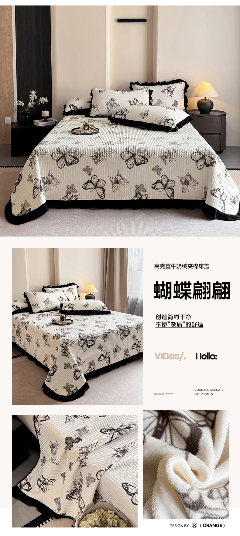 商品名称:安哆啦家纺 2025新款法式赫本风牛奶绒单床盖 蝴蝶翩翩
