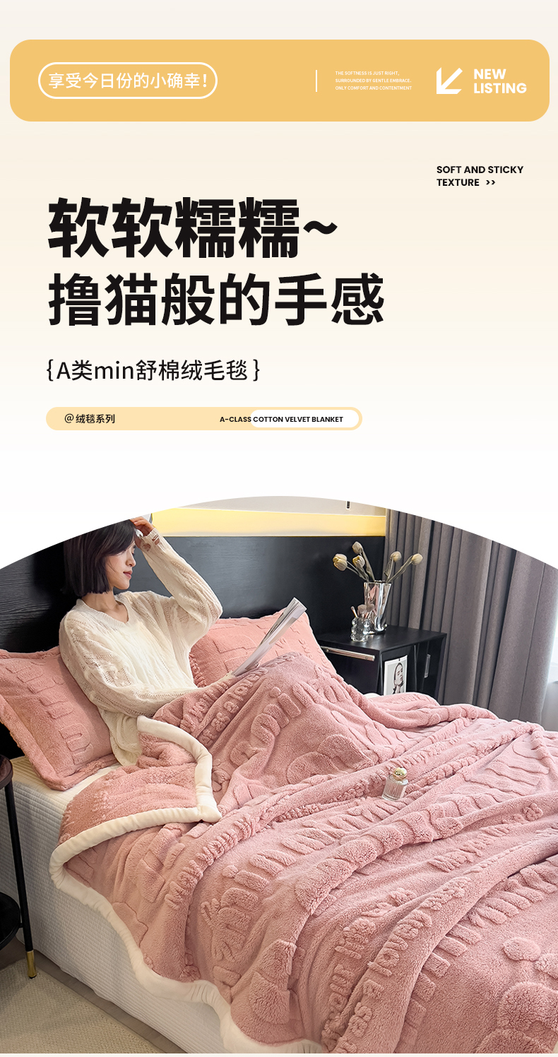 当前位置: 91家纺网 > 商品网购 > 毛毯休闲毯绒毯 > 毛毯 > 叠派家纺 2025新款A类纯色min舒棉绒雕花剪花多功能毛毯(可供跨境外贸抽空热款首选) 白边-豆沙粉