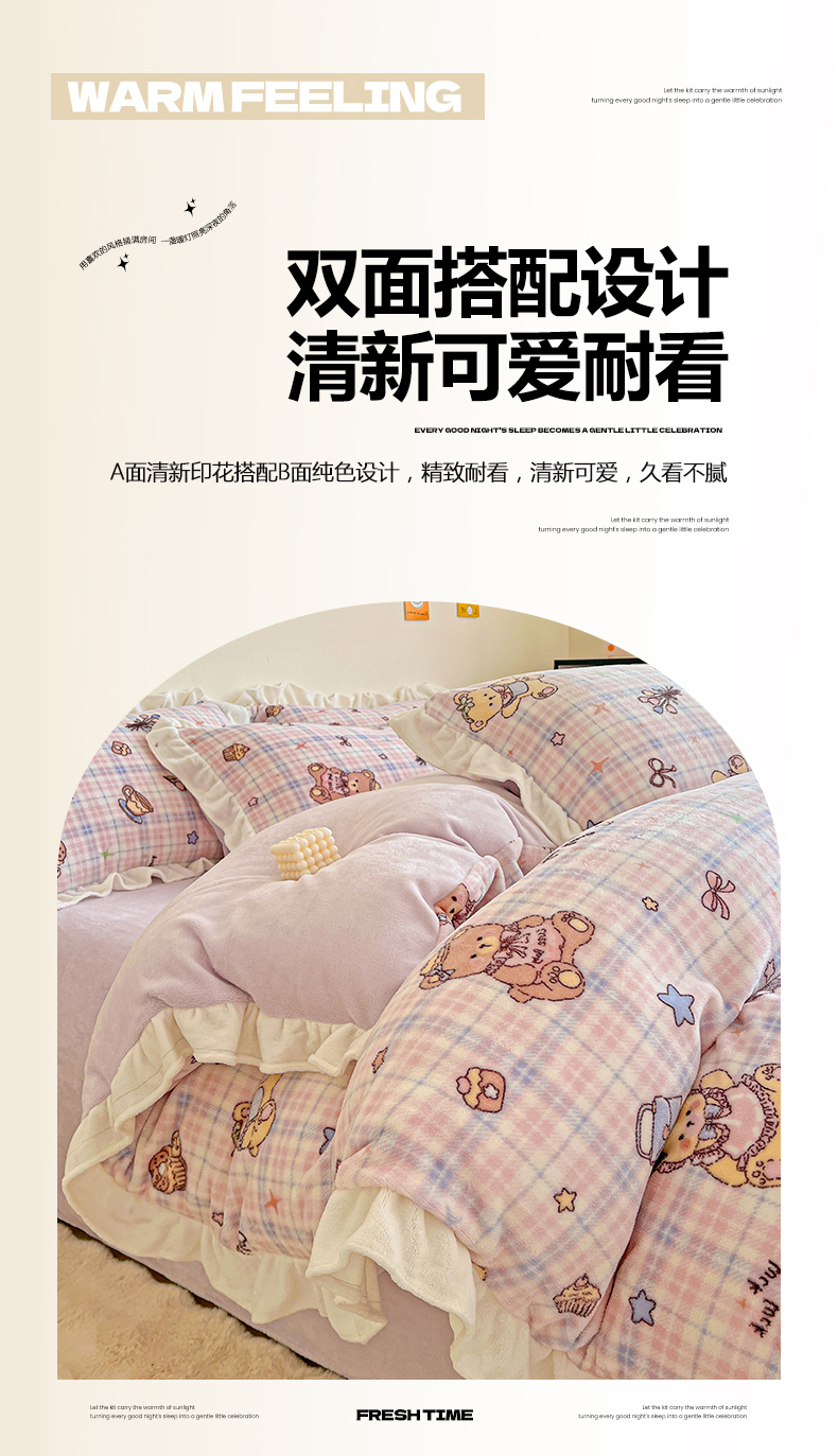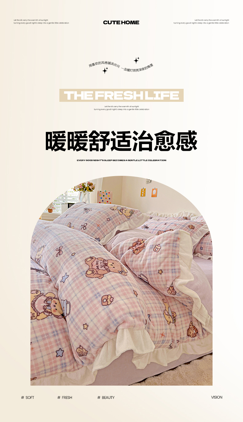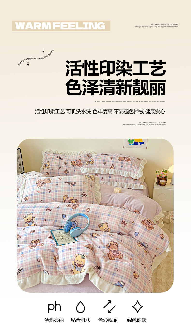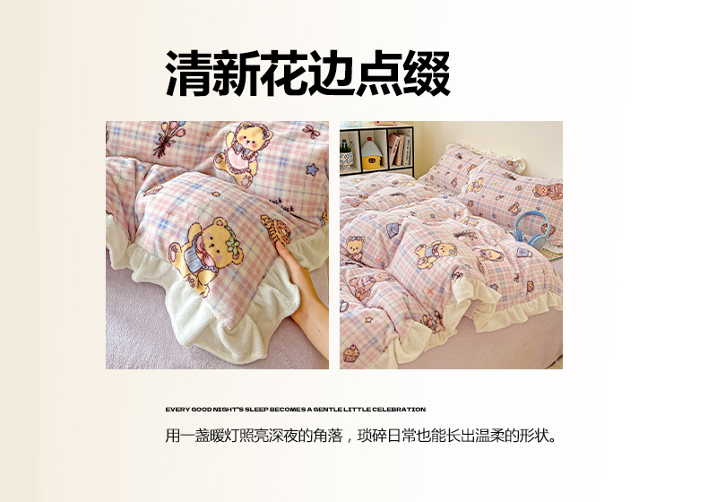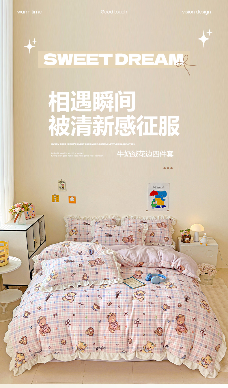 当前位置: 91家纺网 > 商品网购 > 床品套件 > 四件套 > 牛奶绒四件套 > 眷恋家纺 2025新款秋冬新品牛奶绒花边四件套 温馨小熊