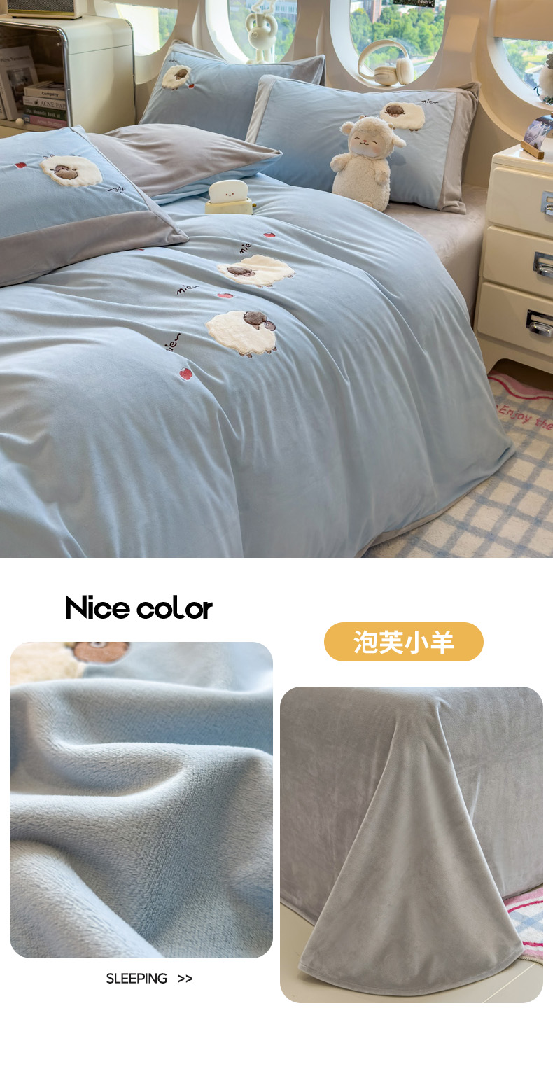 (总)席世家 2025新款婴儿绒贴布绣四件套