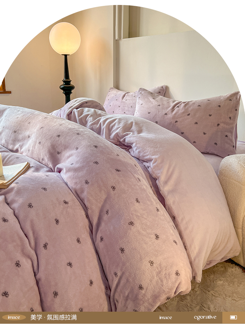 (总)思诺羽床笠 2025新款加厚牛奶绒印花四件套,彩韵,格棕,绒点,绒格蝶梦,樱语,紫爱心,紫蝶,紫花绒梦,紫韵