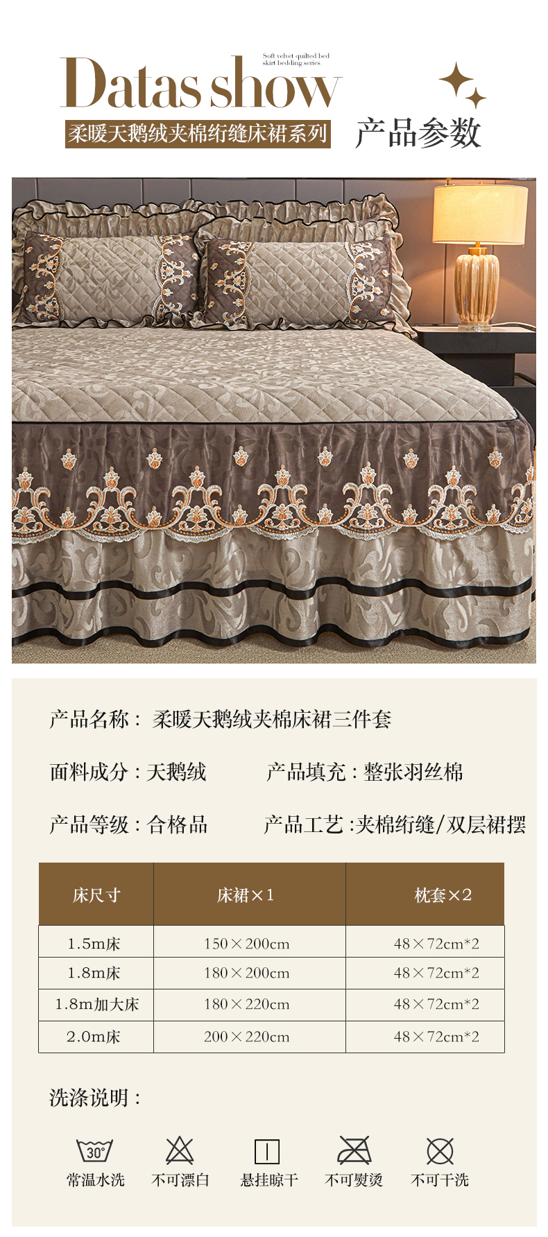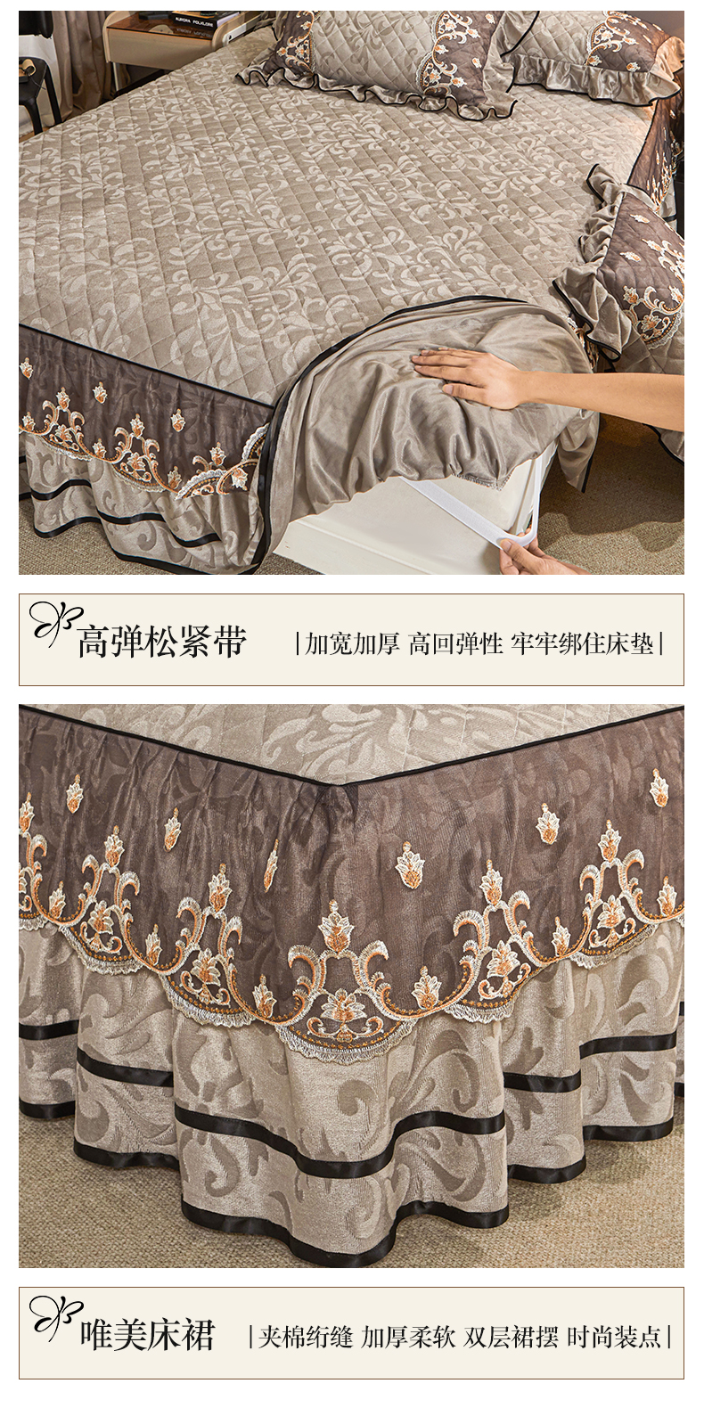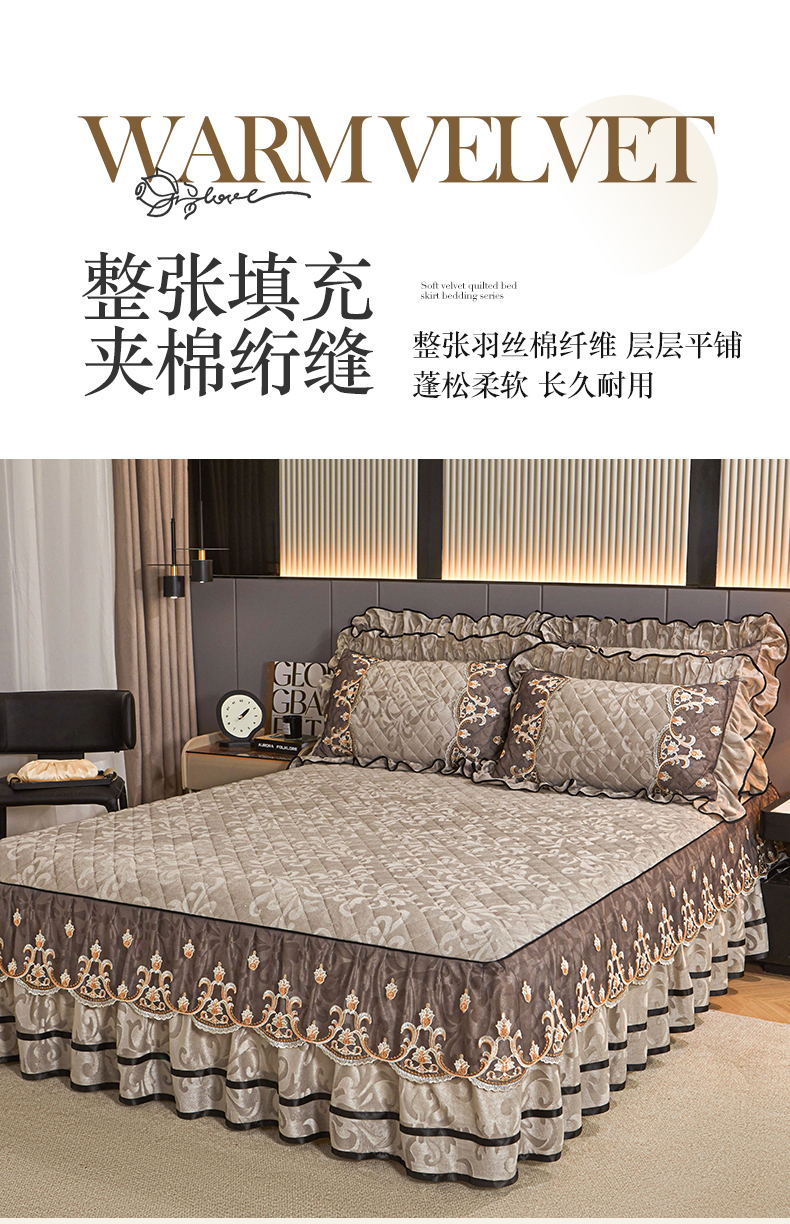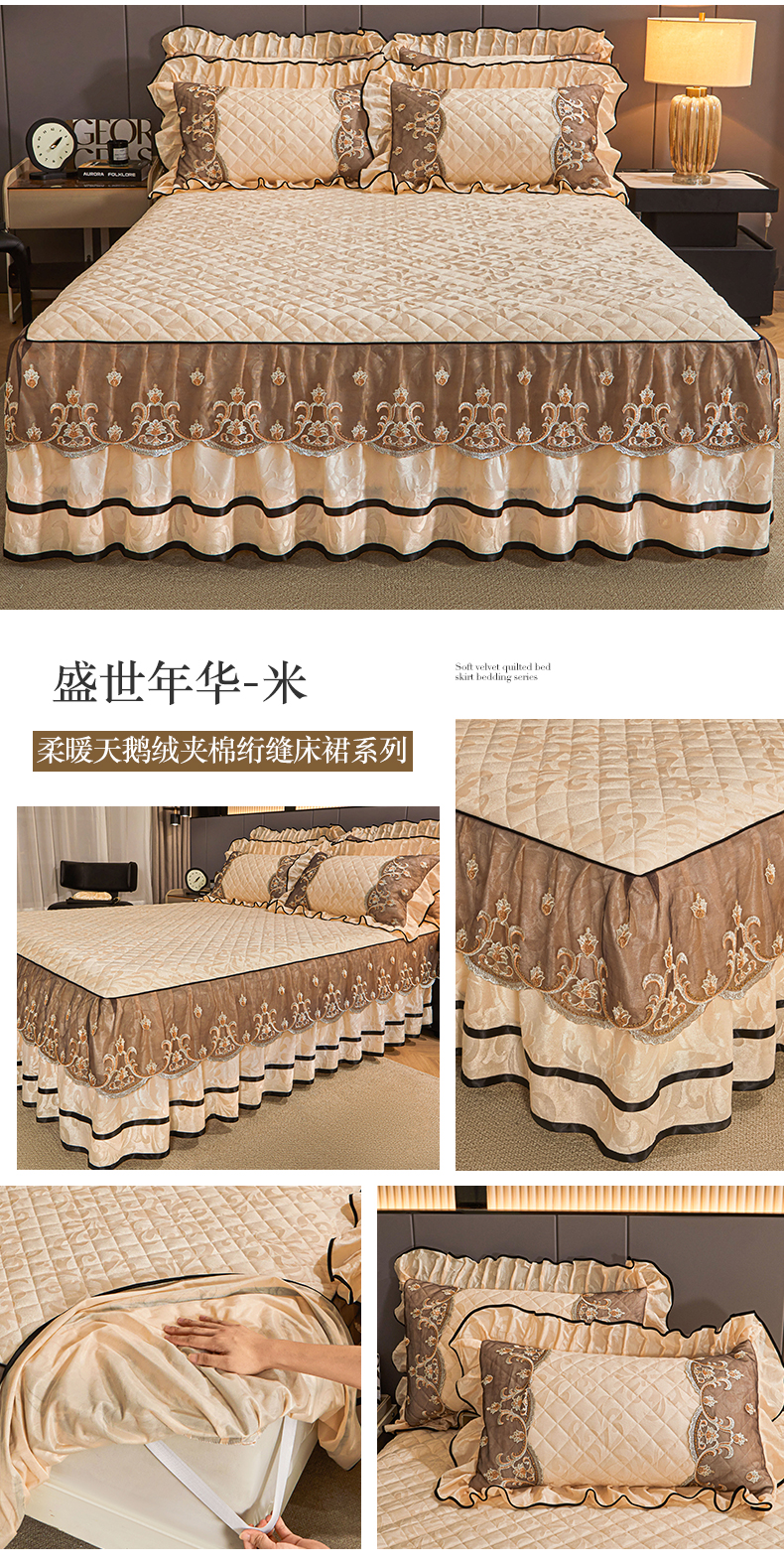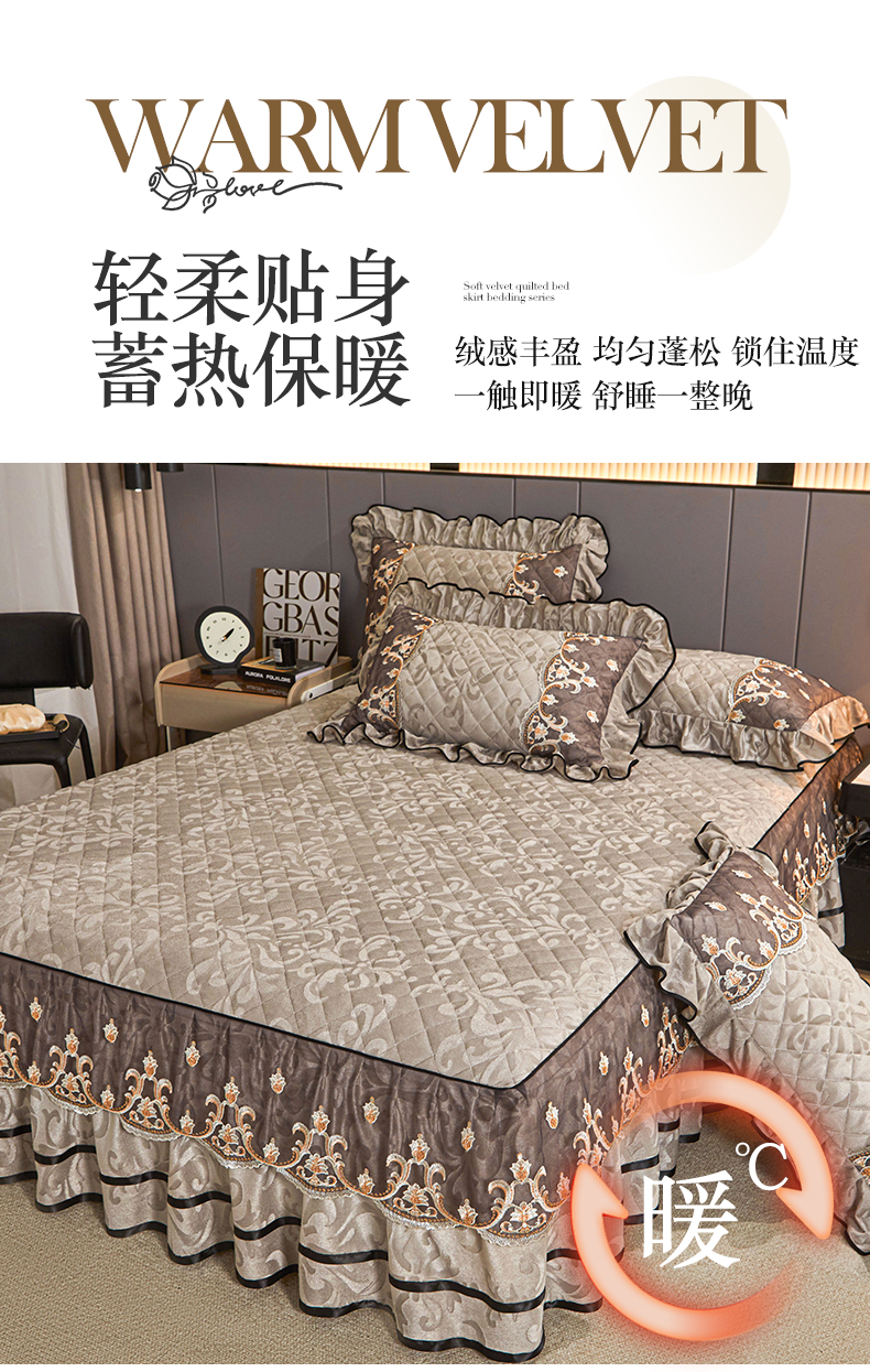 好儿喜家纺 2025新款柔暖天鹅绒夹棉床裙盛世年华系列床裙三件套 盛世年华-灰