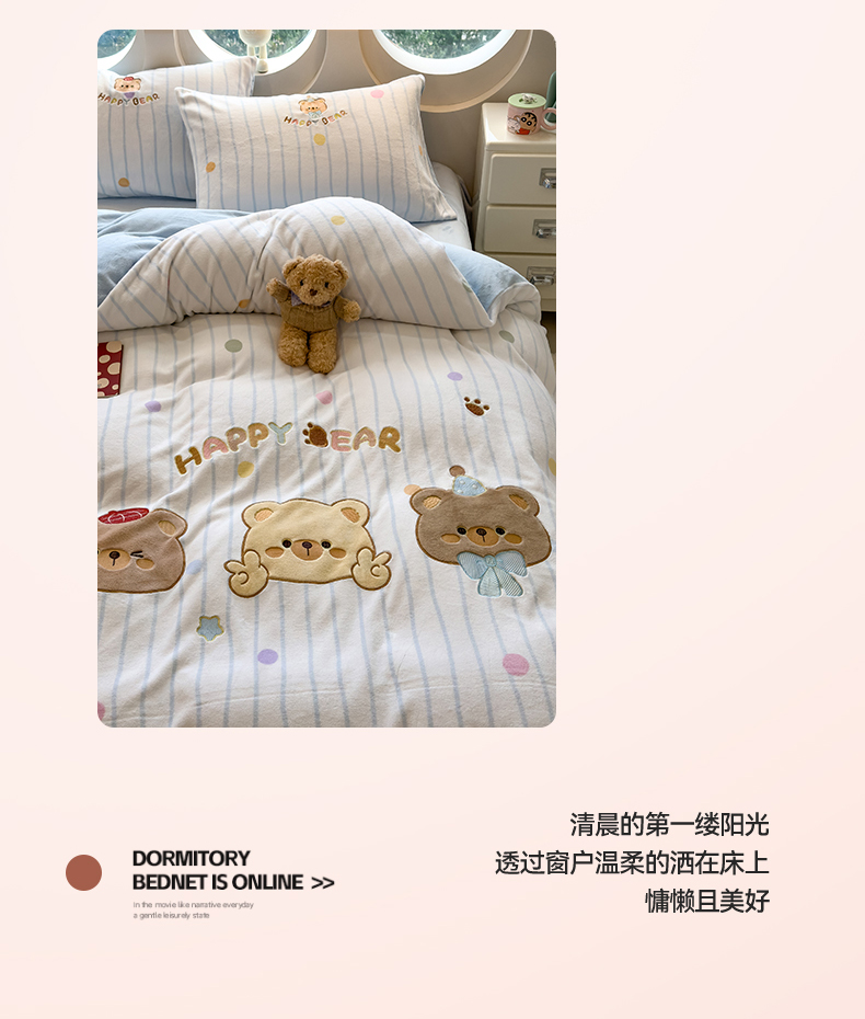 商品名称:曲之慕 2025新款卡通消光牛奶绒贴布四件套 熊熊乐园