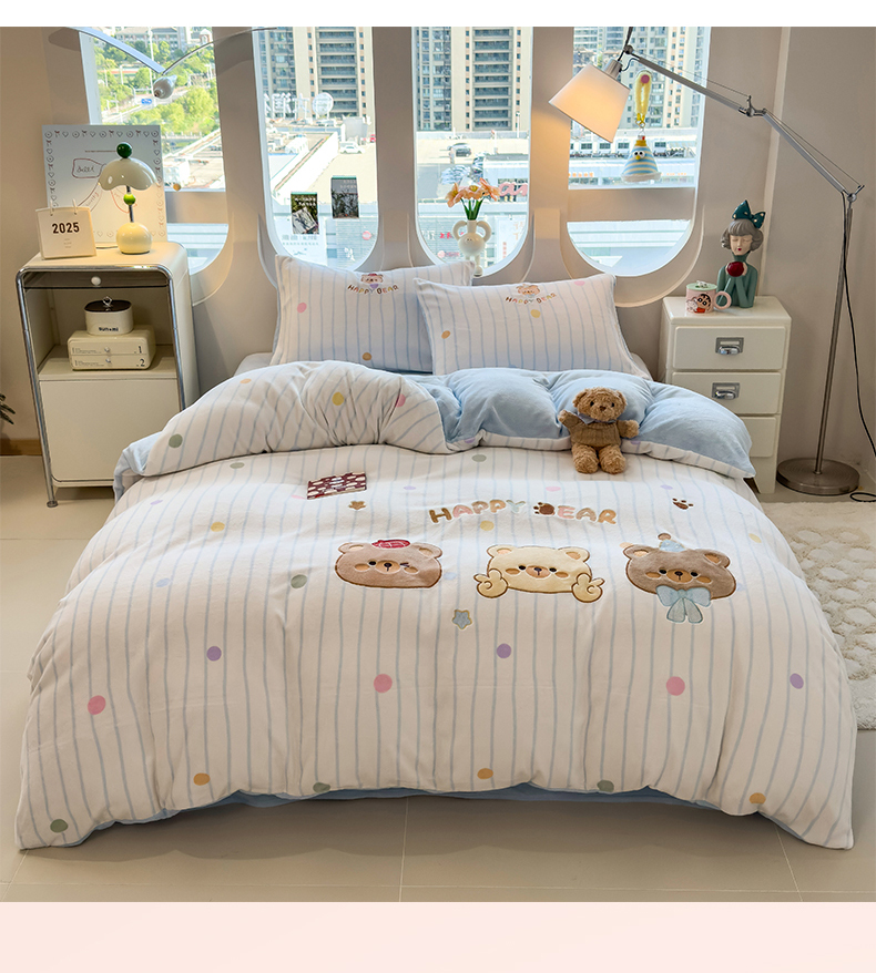 曲之慕 2025新款卡通消光牛奶绒贴布四件套 熊熊乐园