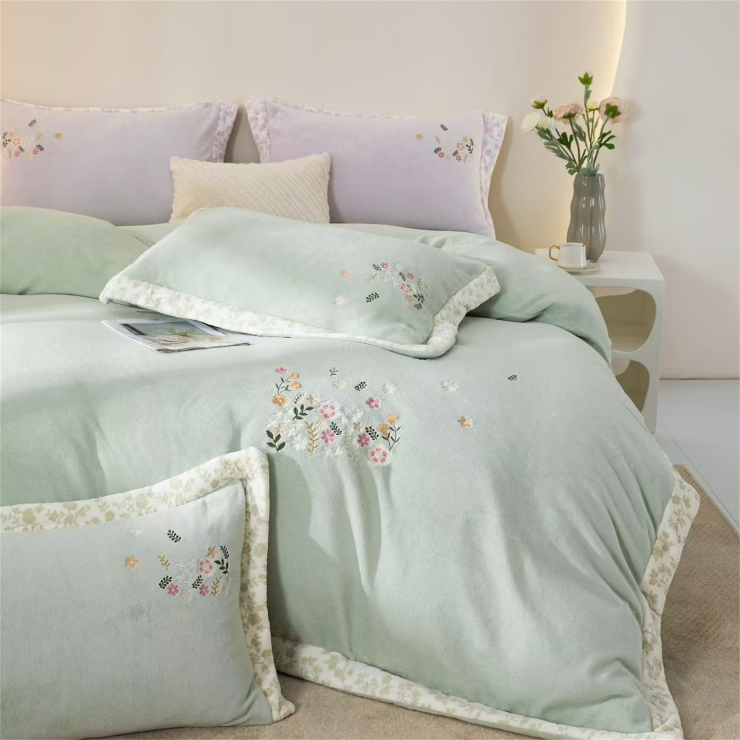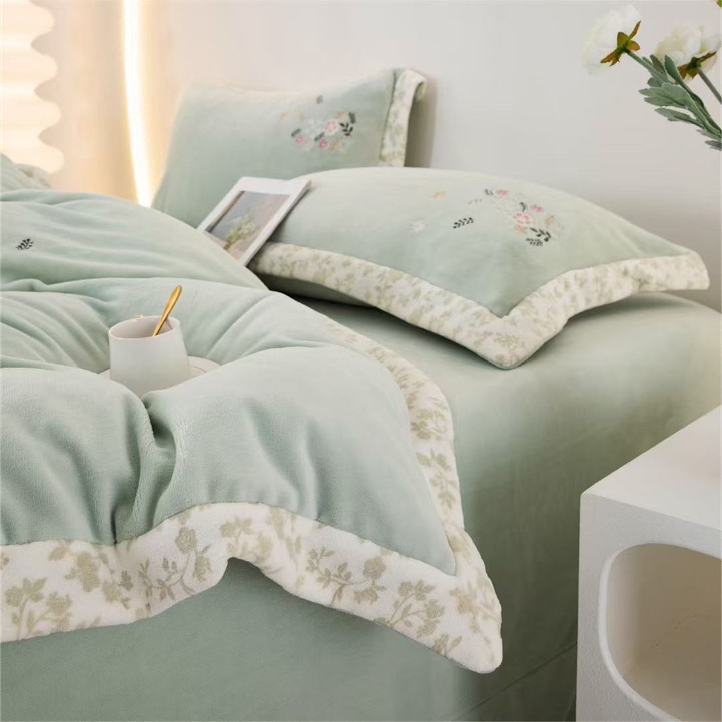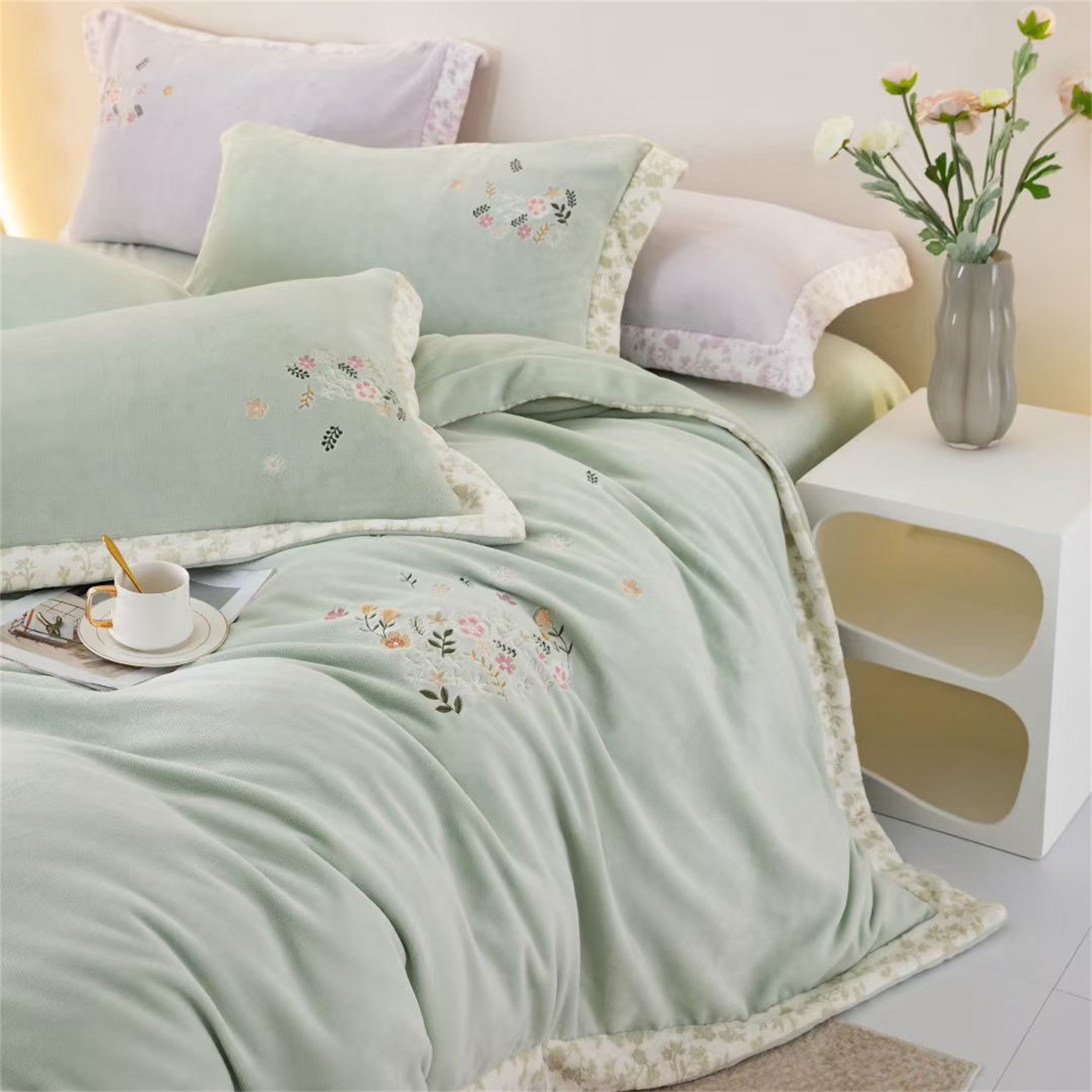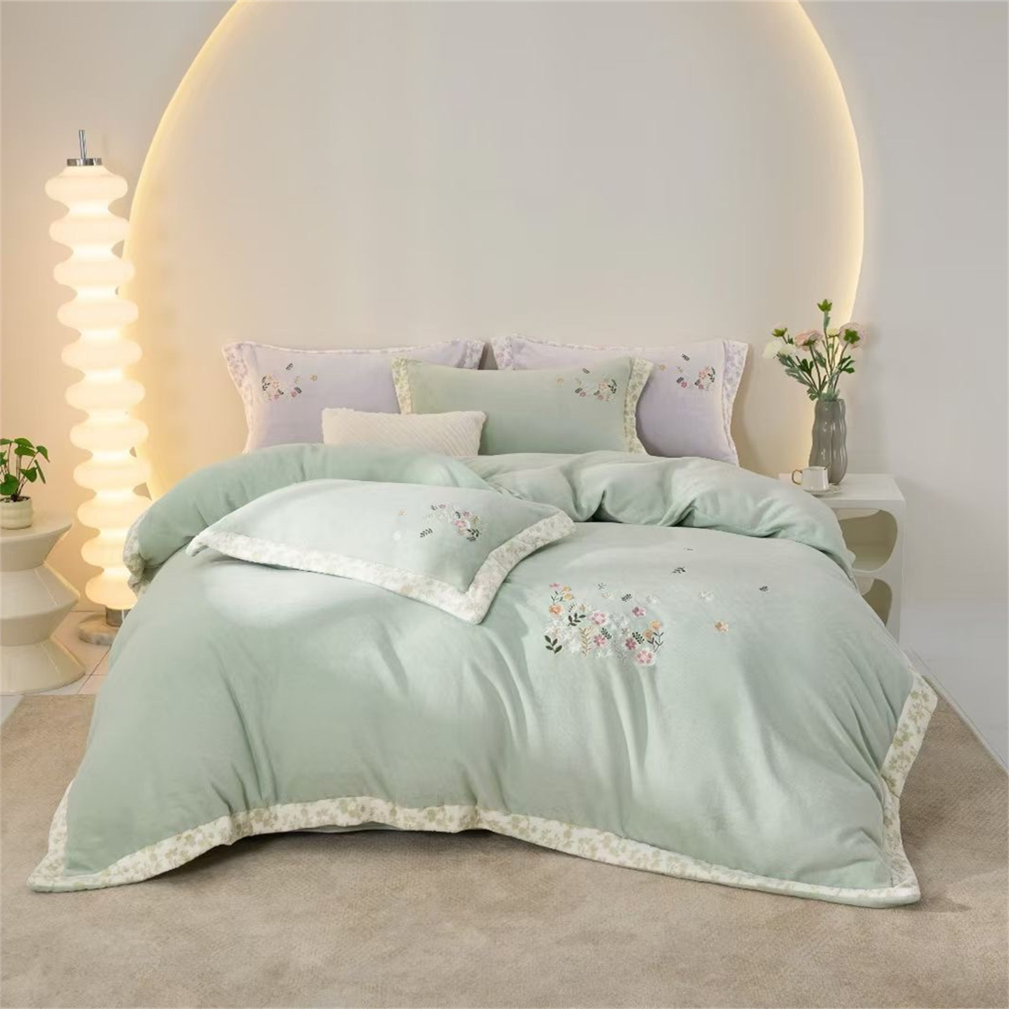 玖琳家纺 2025新款双面240克全消牛奶绒铂金牛奶绒四件套-漫影系列 清草绿