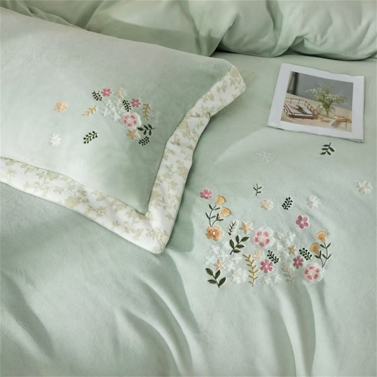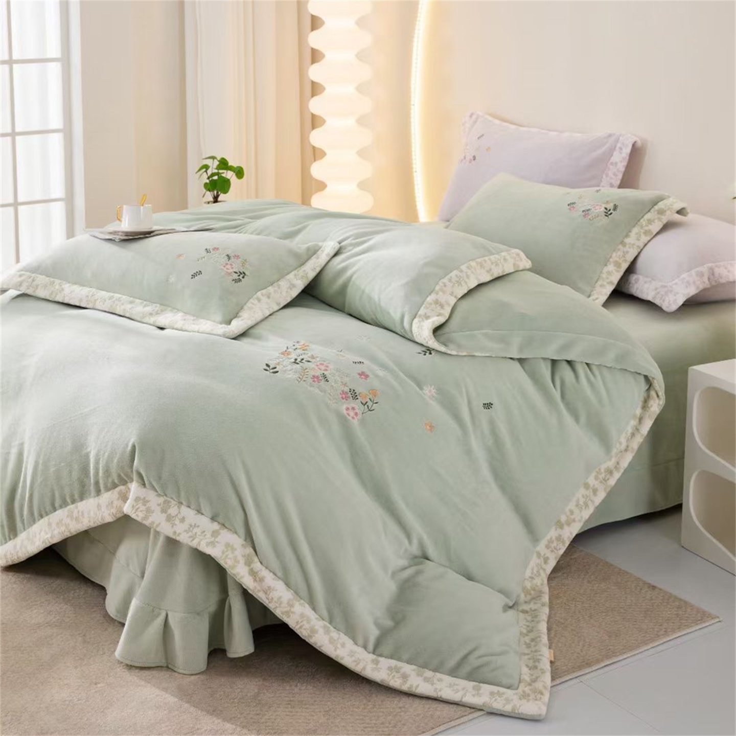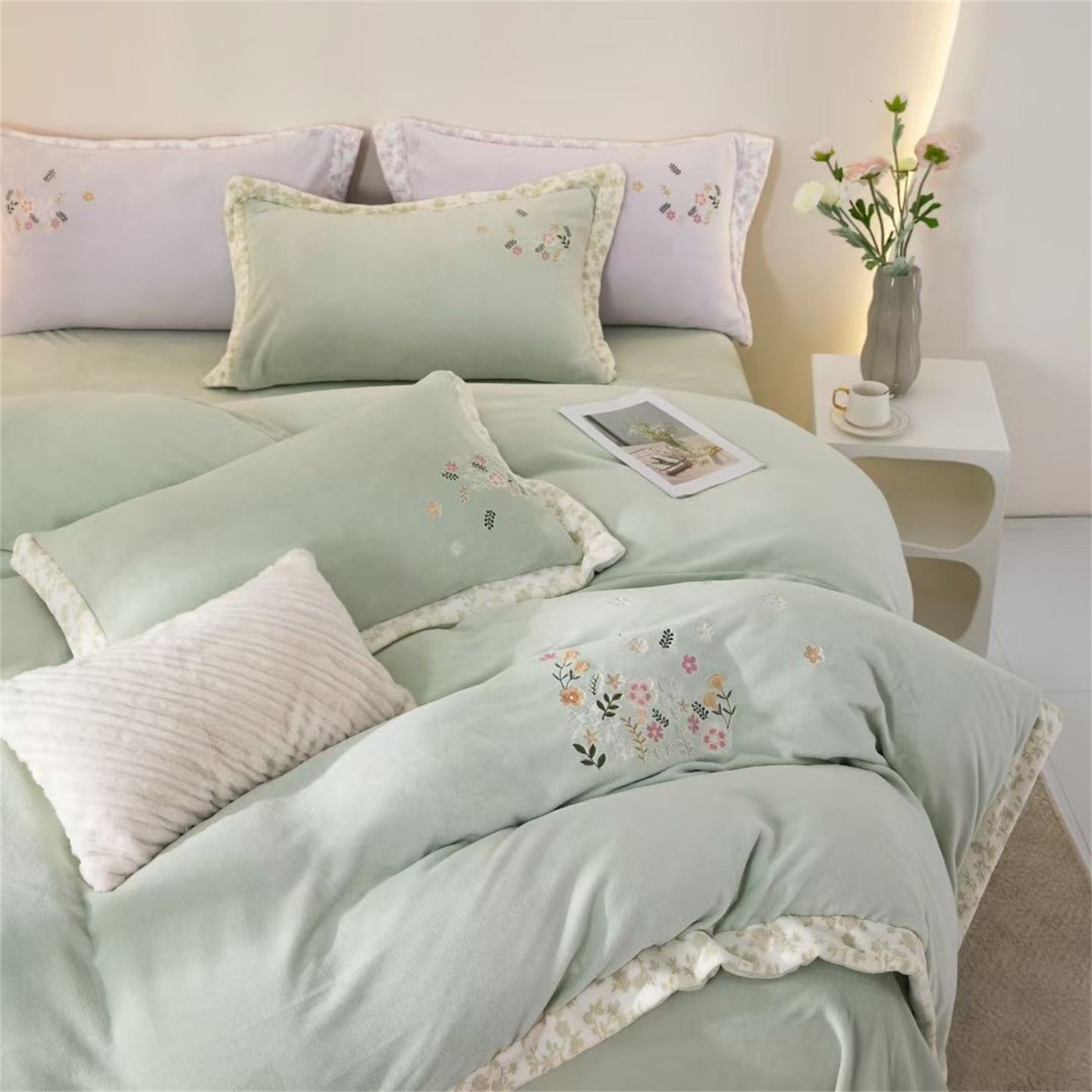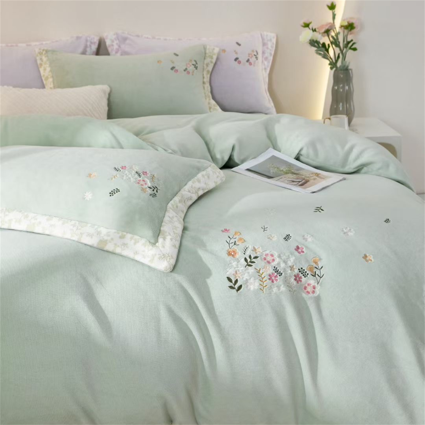 玖琳家纺 2025新款双面240克全消牛奶绒铂金牛奶绒四件套-漫影系列 清草绿