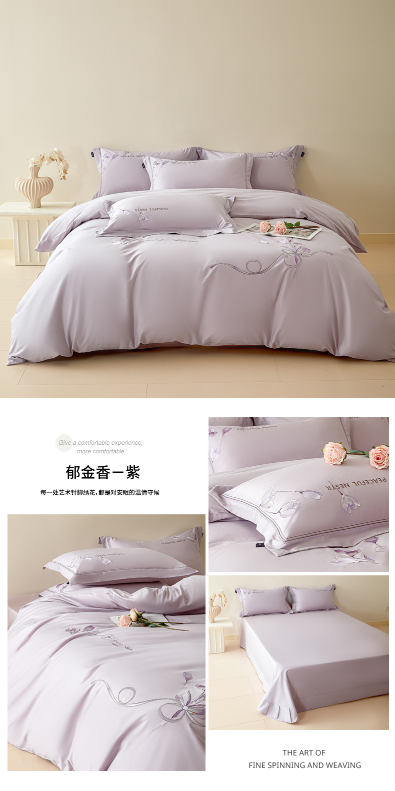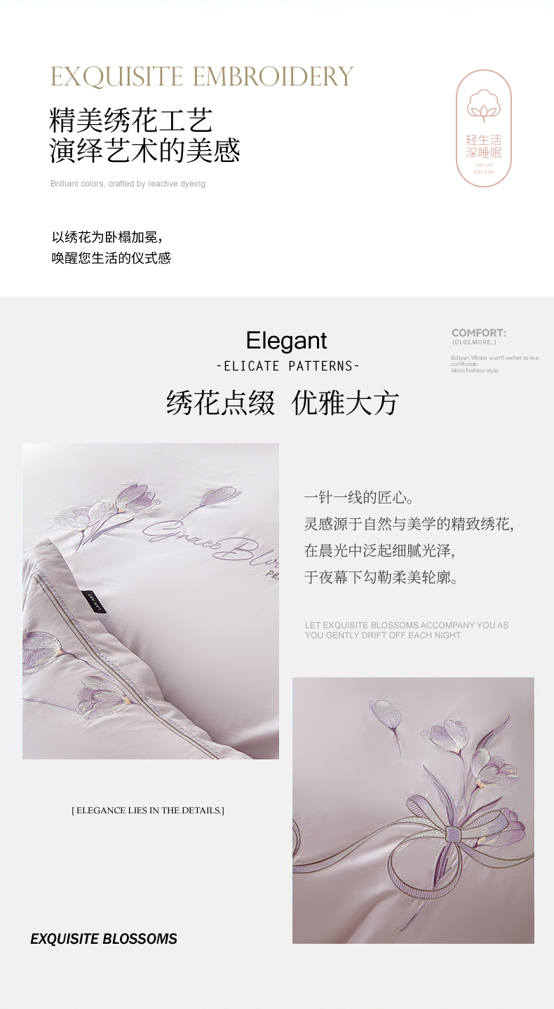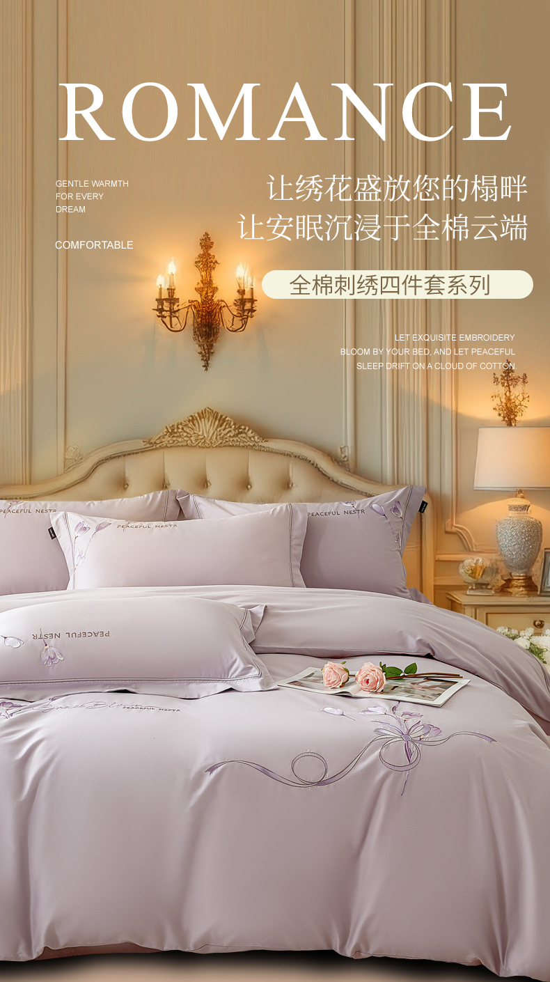 (总)洺兰家居 2026年新疆长绒棉100支刺绣款绣花工艺款法式四件套 云岚,云岚-粉,云岚-米,云岚-紫