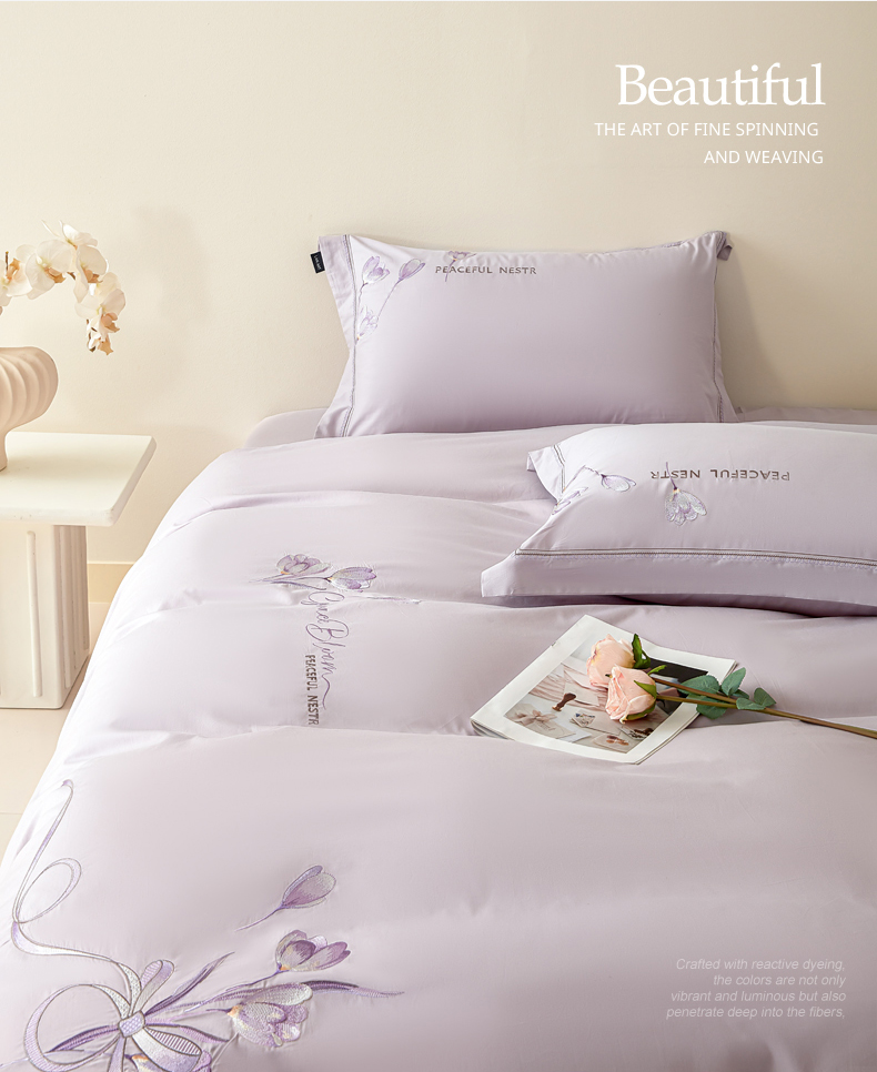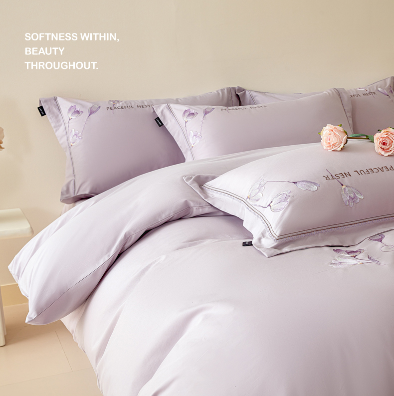 洺兰家居 2025新疆长绒棉高支高密刺绣款绣花四件套-郁金香 郁金香-紫