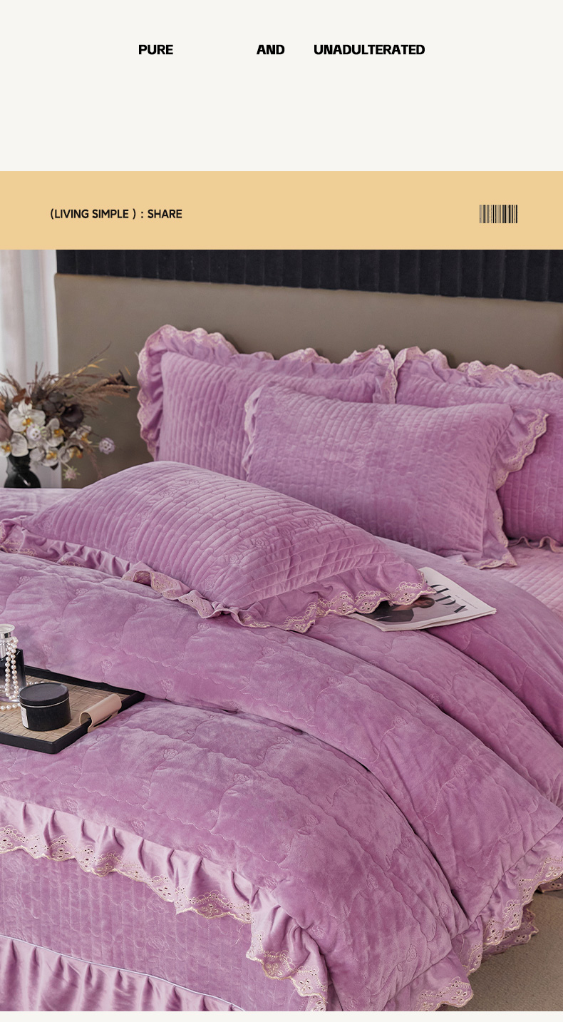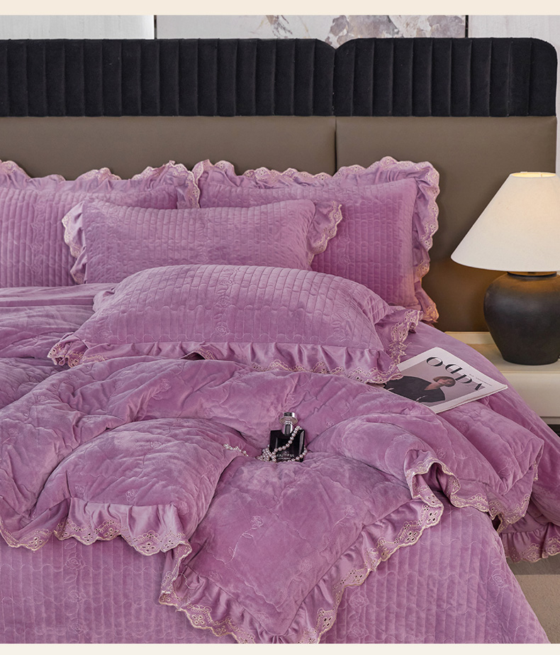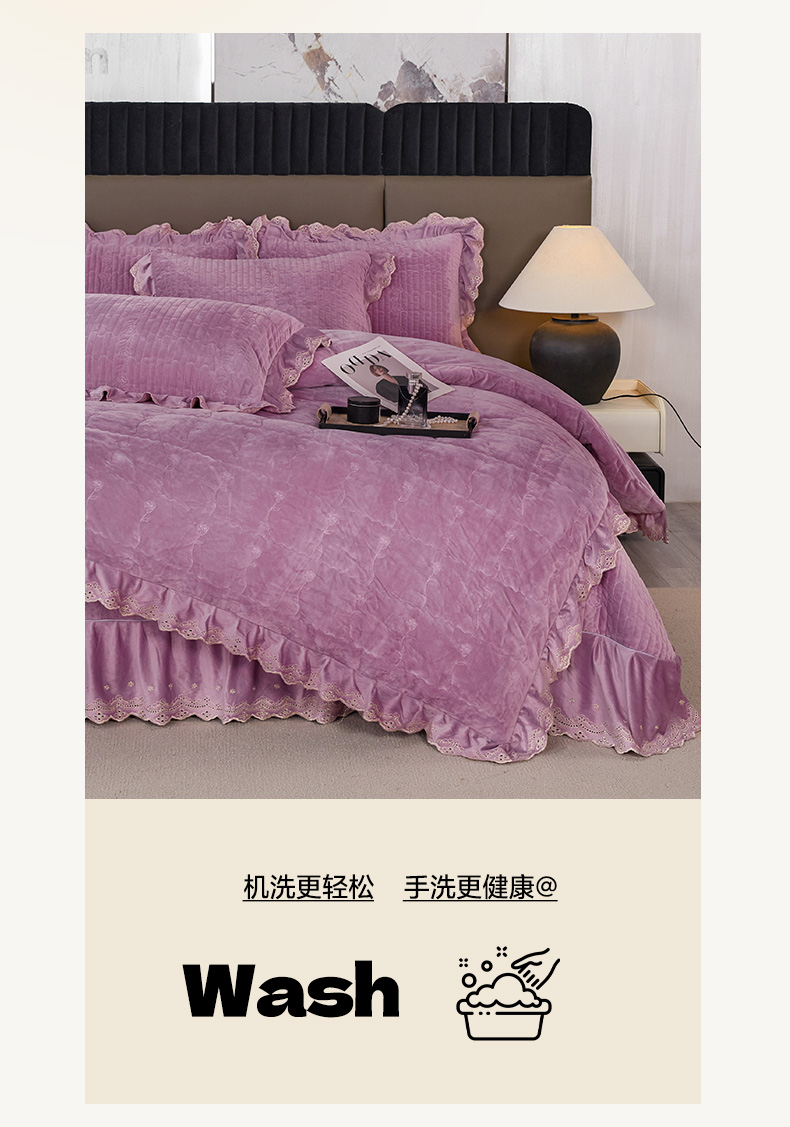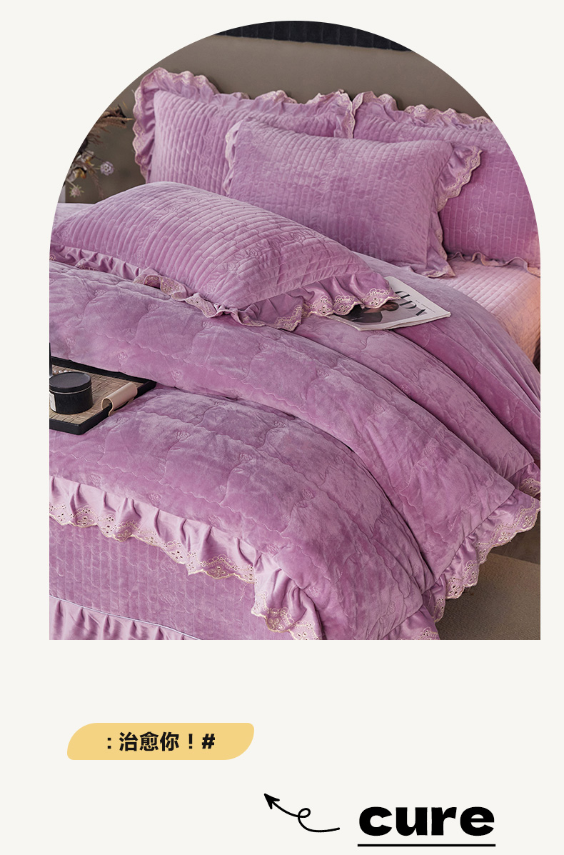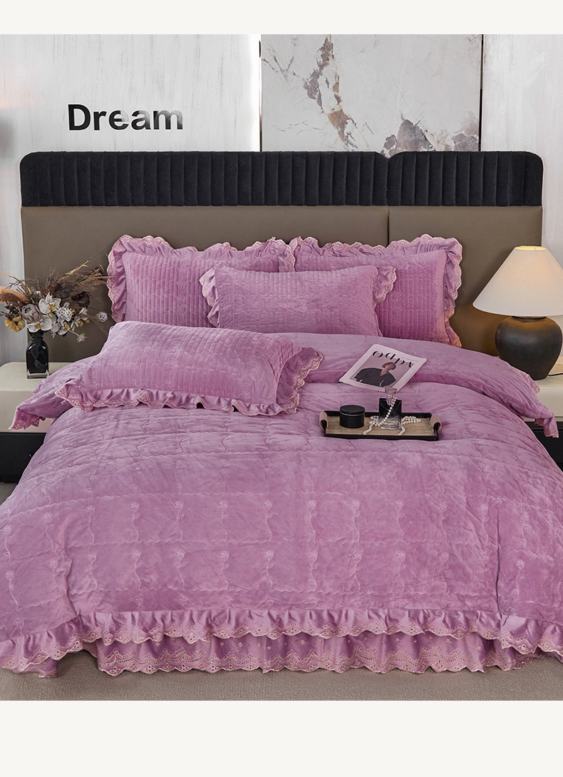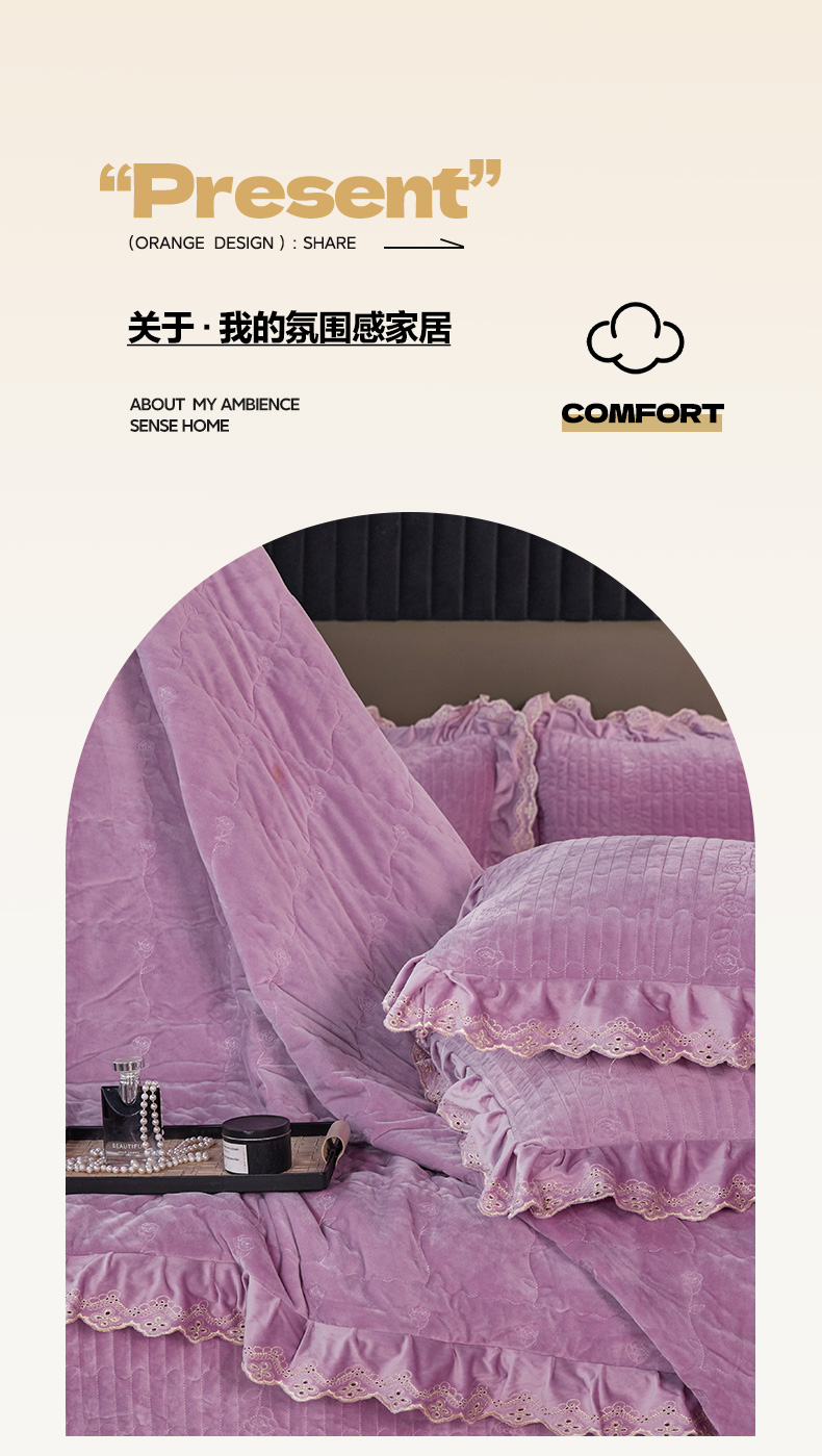 (总)默忆 2025新款雕花牛奶绒夹棉床盖款四件套-森野,森野-幻紫,森野-暖白,森野-浅灰,森野-柔粉