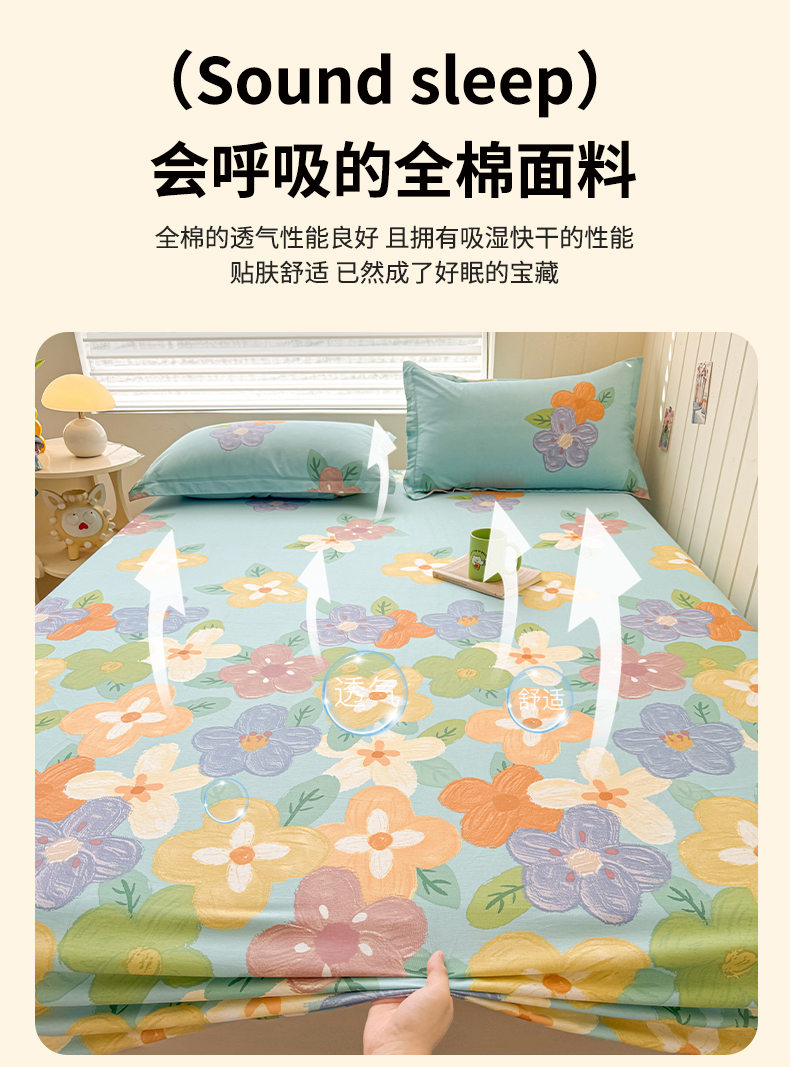 名优家纺 2025新款12868全棉印花外贸床笠 氧气格调