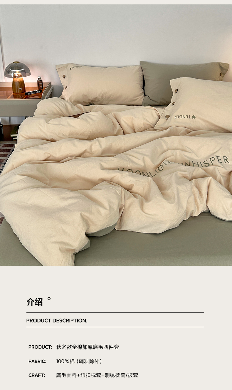 当前位置: 91家纺网 > 商品网购 > 床品套件 > 四件套 > 全棉普通四件套 > 艾咪-Amy ntmy 2025秋冬纽扣款全棉加厚磨毛刺绣四件套-漫月 漫月绿卡