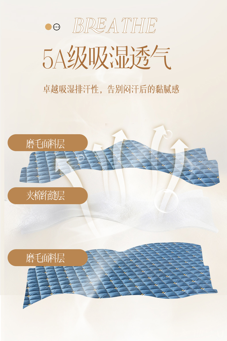 150x200cm+15cm单床笠-五层夹棉