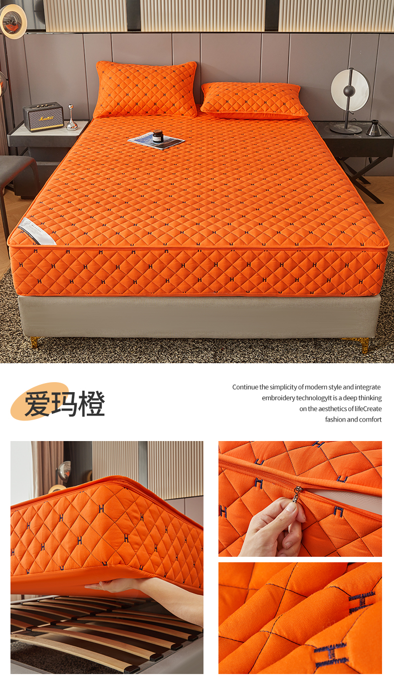 (总)纤雅床笠 2024新款高克重压花宝宝绒六面全包床笠,橘红色,抹茶绿,苏梅粉